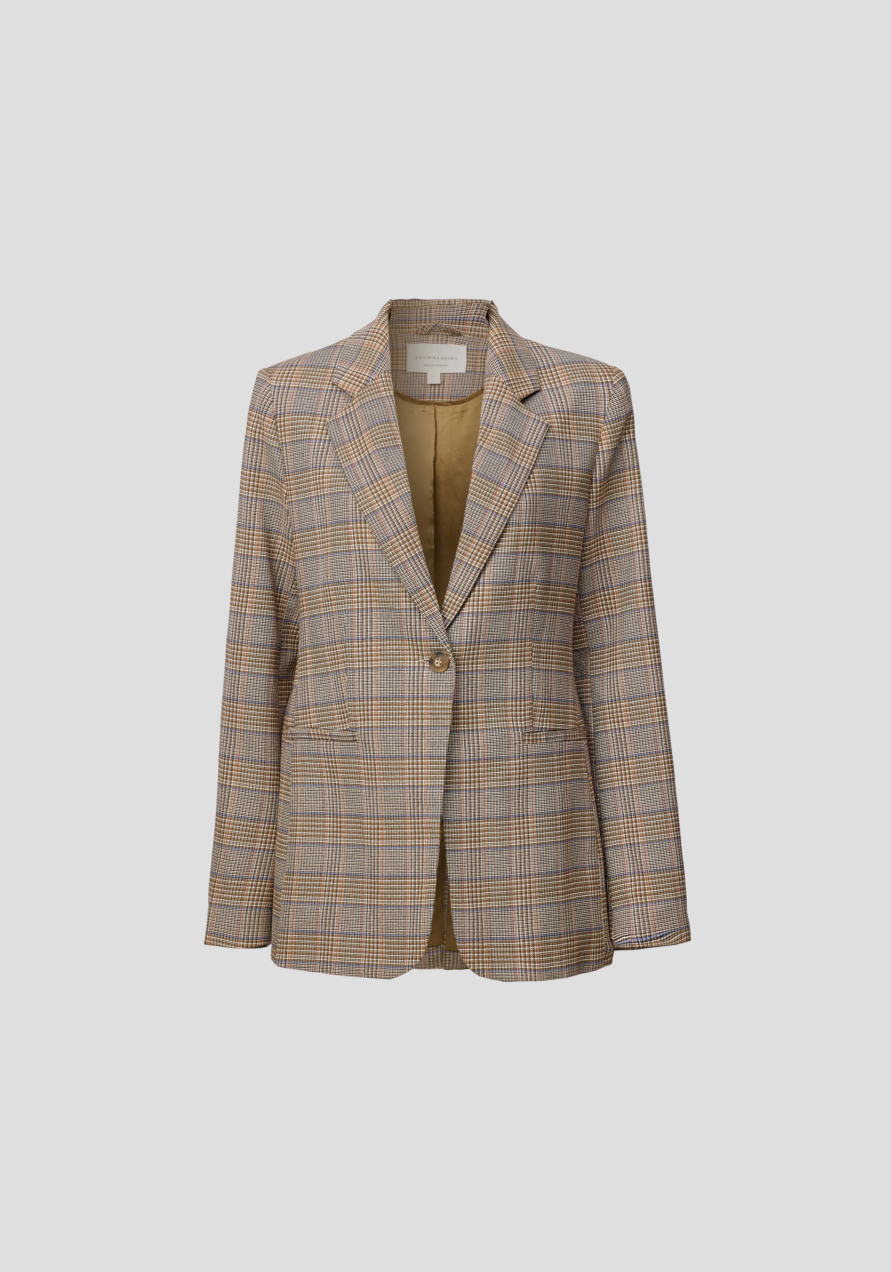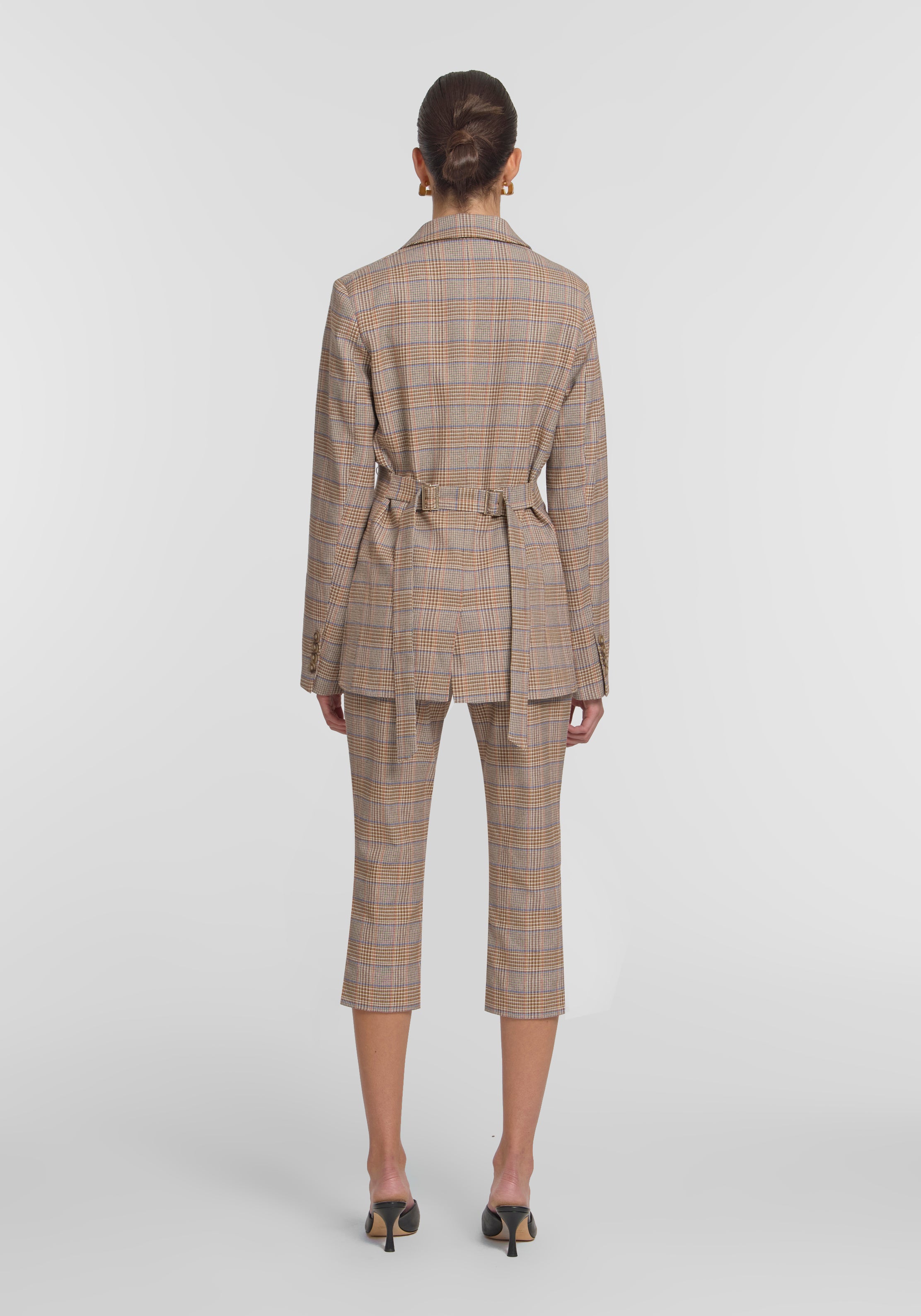 A season standout, the Prerogative Blazer is crafted in a captivating neutral check. Distinguished by a single-breasted silhouette, notched collar, and sharp shoulders, it offers the option to cinch the waist with an adjustable belt, adorned with branded sliders. Style with the matching Pitch Vest and Sunbeam Capri or Flint Short for a tailored set dressing moment.