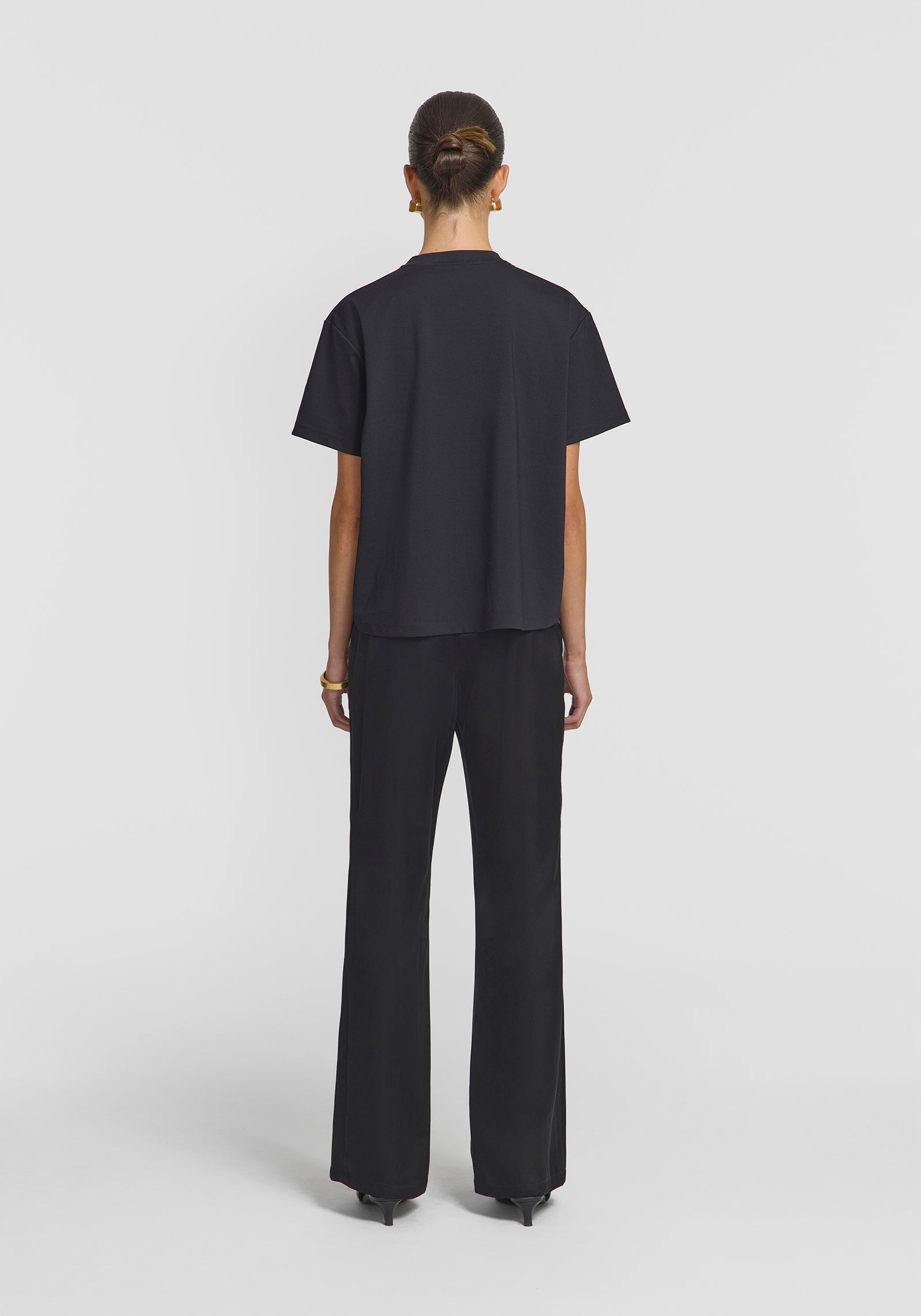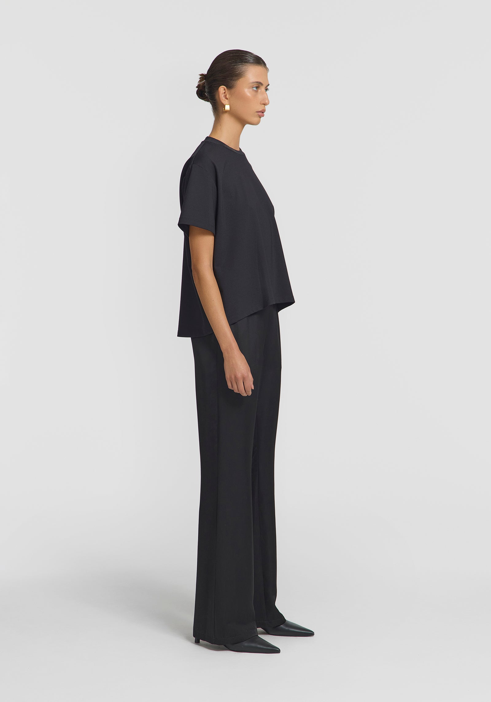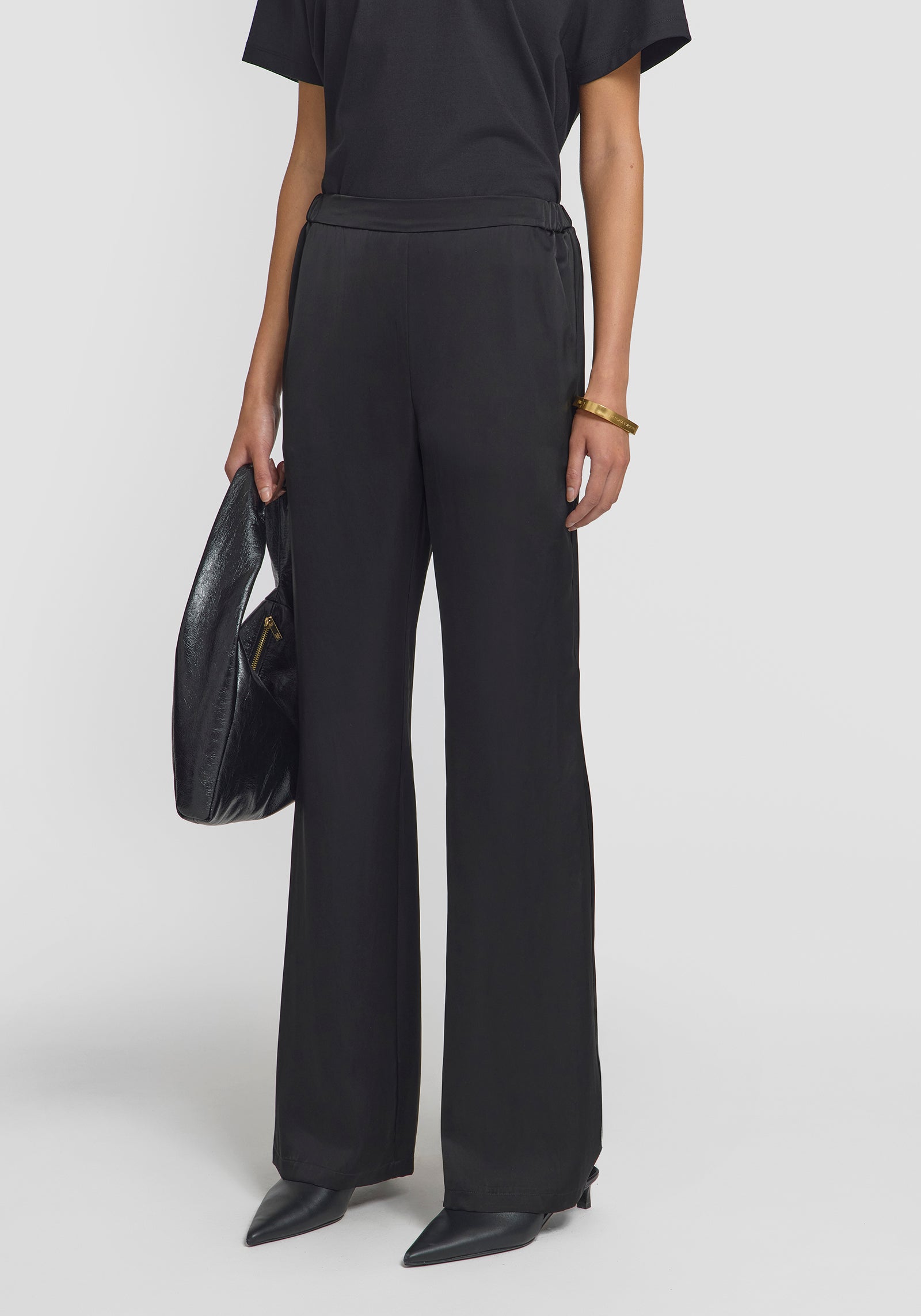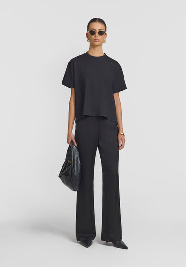 Introducing the Prologue Trouser, crafted from a cupro blend in classic black. Boasting a soft bootleg silhouette with a relaxed mid-rise fit, it features a flat front waistband with an elasticated back and pockets. Complete your look with the Oracle Shirt for an elegantly timeless set or pair back with your everyday essentials for effortless styling.