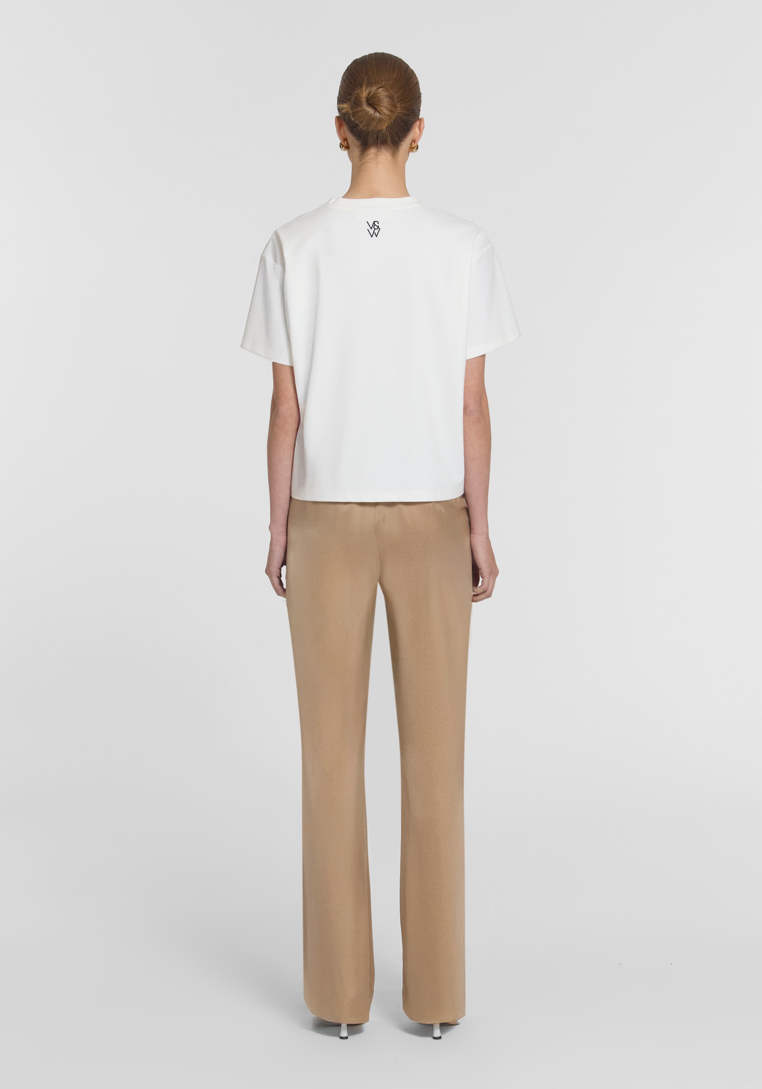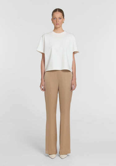 The Prologue Pant, crafted from our signature cupro blend in a warm hazelnut hue. Cut in a soft bootleg silhouette with a mid-rise fit, it features a flat front waistband with an elasticated back and pockets. Designed to be worn repeatedly, pair with wardrobe fundamentals or the Broadway Shirt for an enduring uniform defined by relaxed, polished presence.