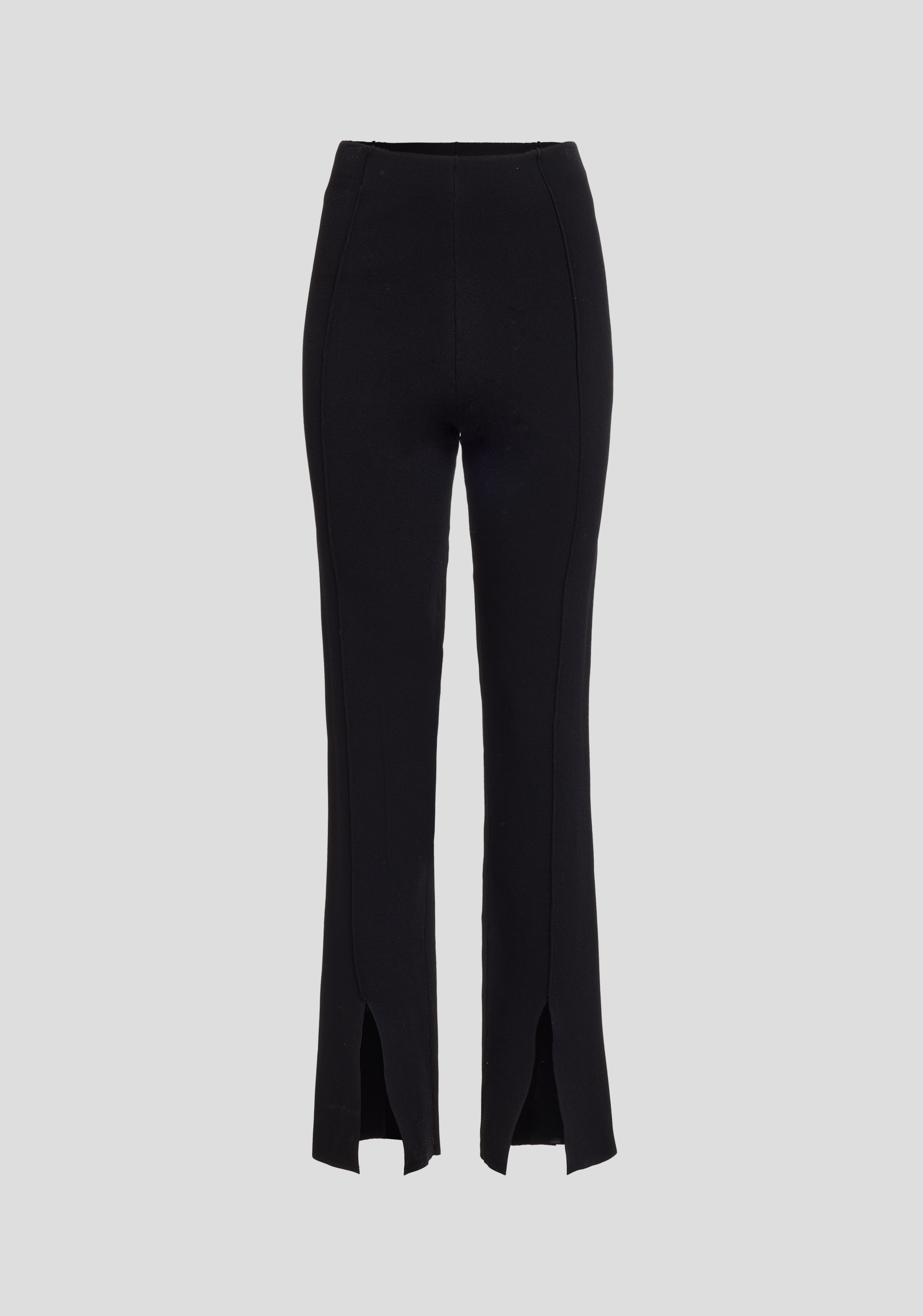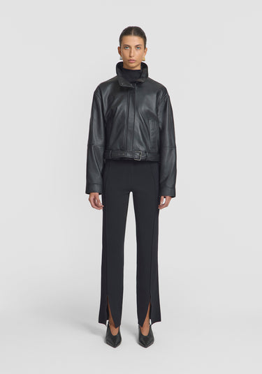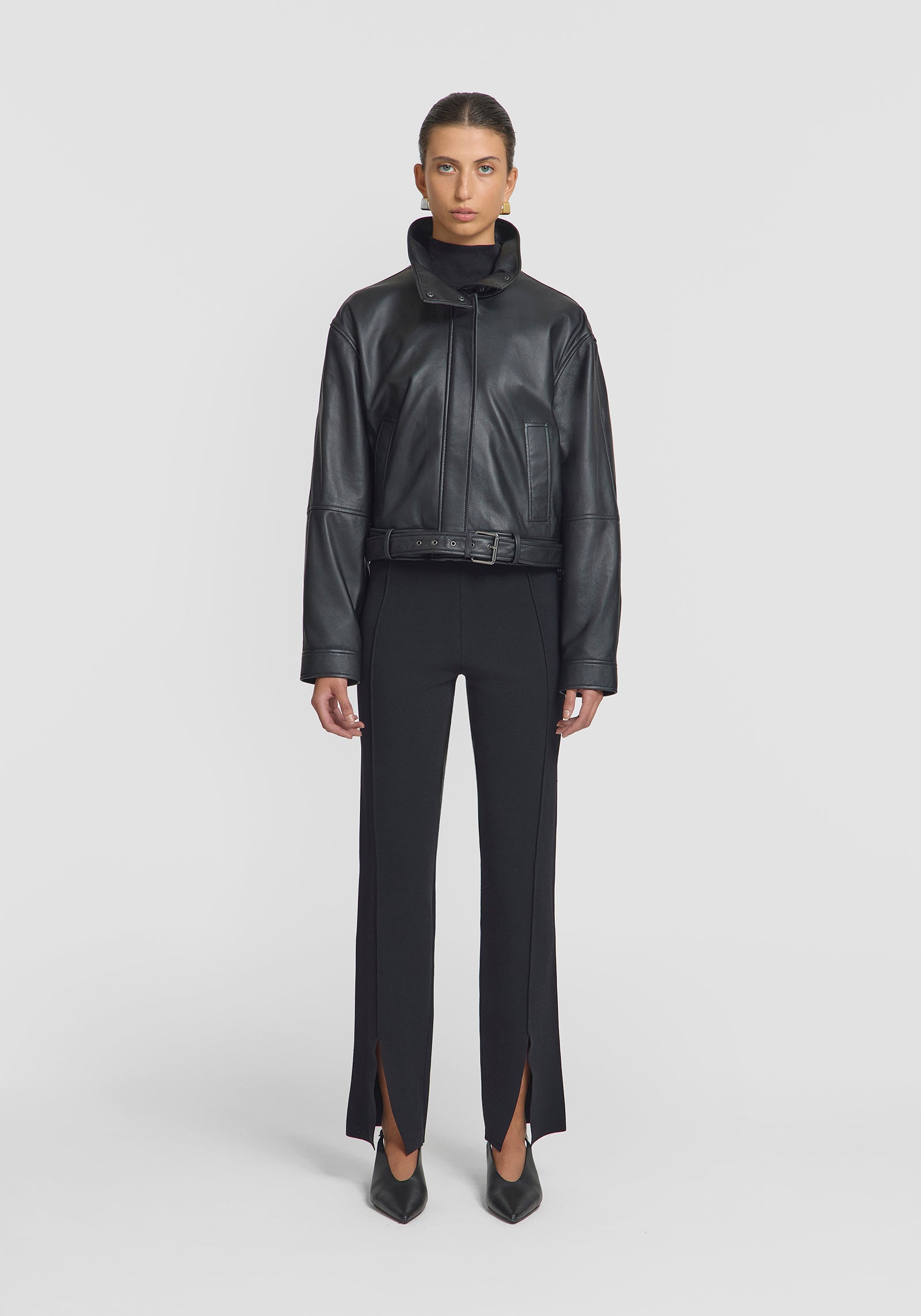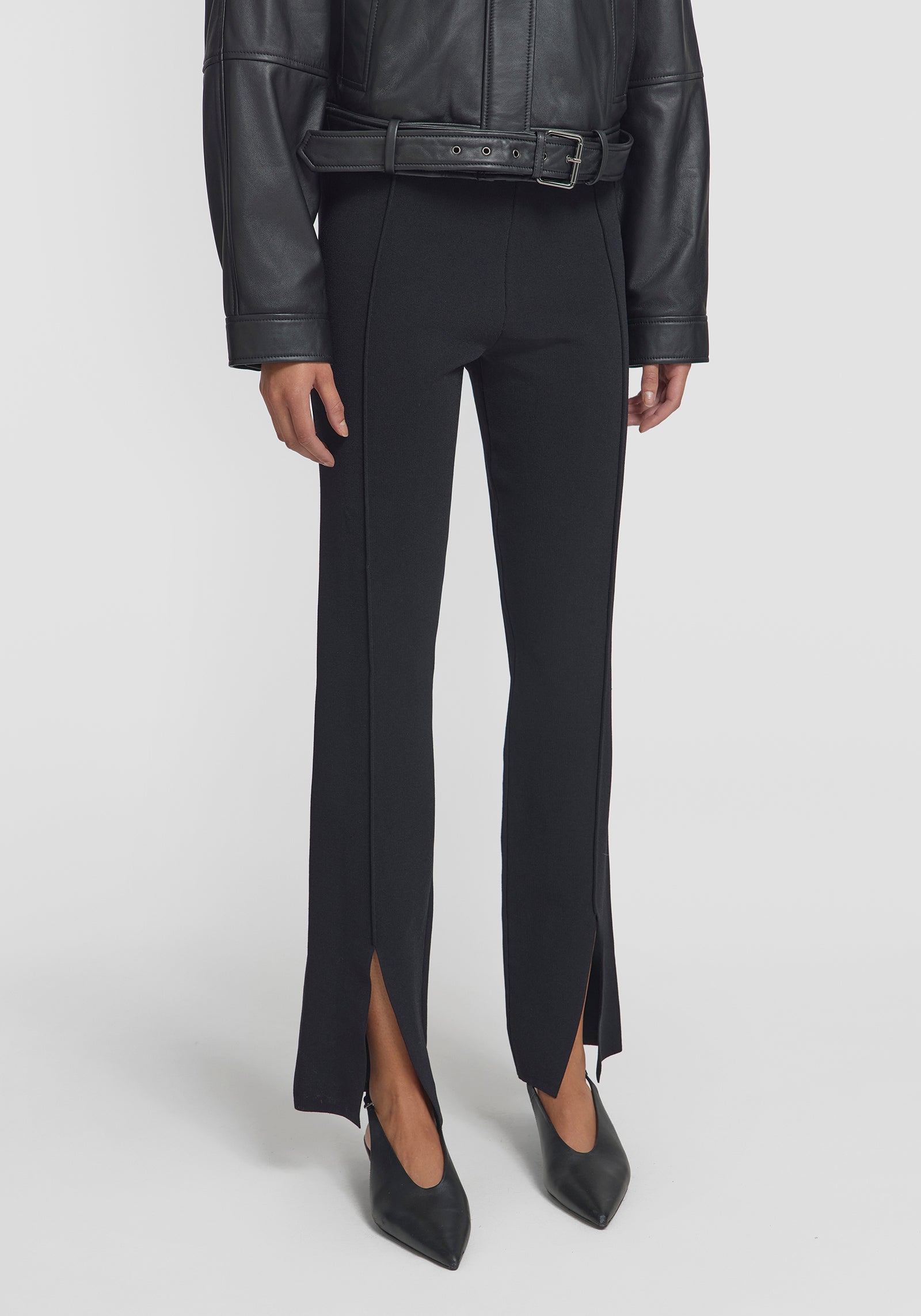 A foundational staple, the Puma Split Pant is fully fashioned in a black milano stitch knit. Designed with a grown-on waist and effortless pull-on fit, it features front hem splits and a soft kick flare silhouette. Balancing comfort and sophistication, style it with the Mogul Blazer for a considered look that fuses modern tailoring with timeless appeal.