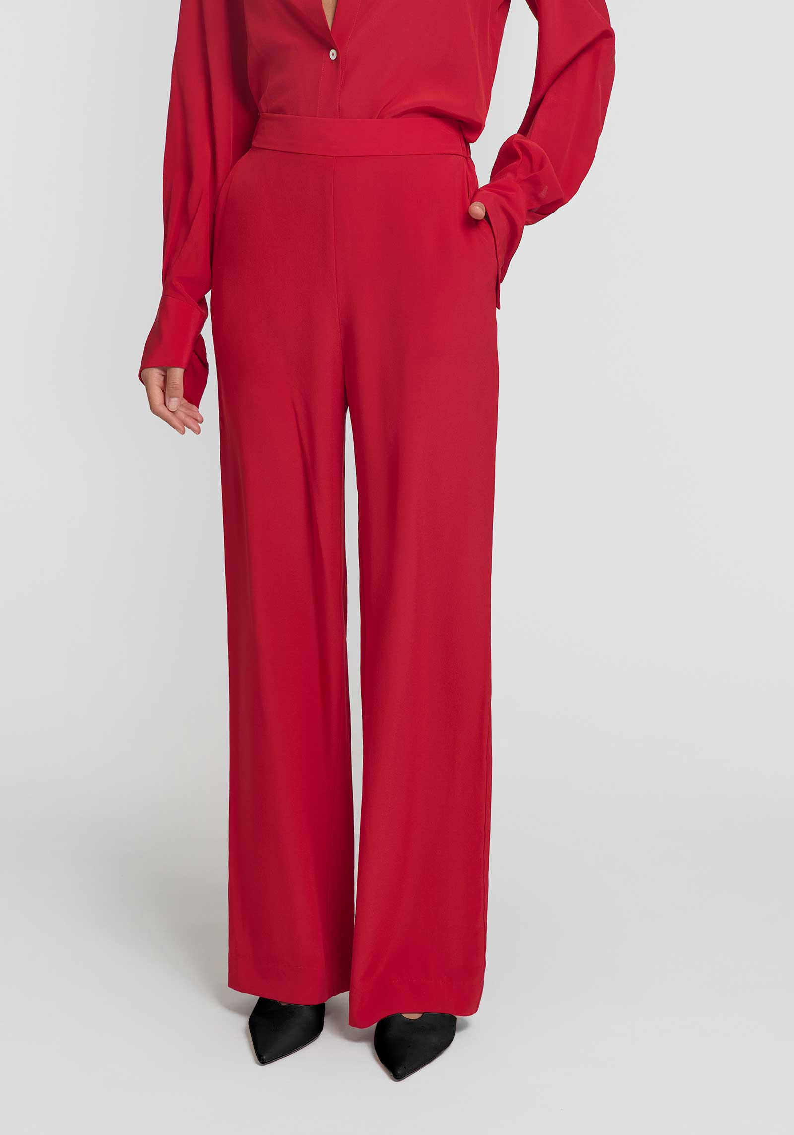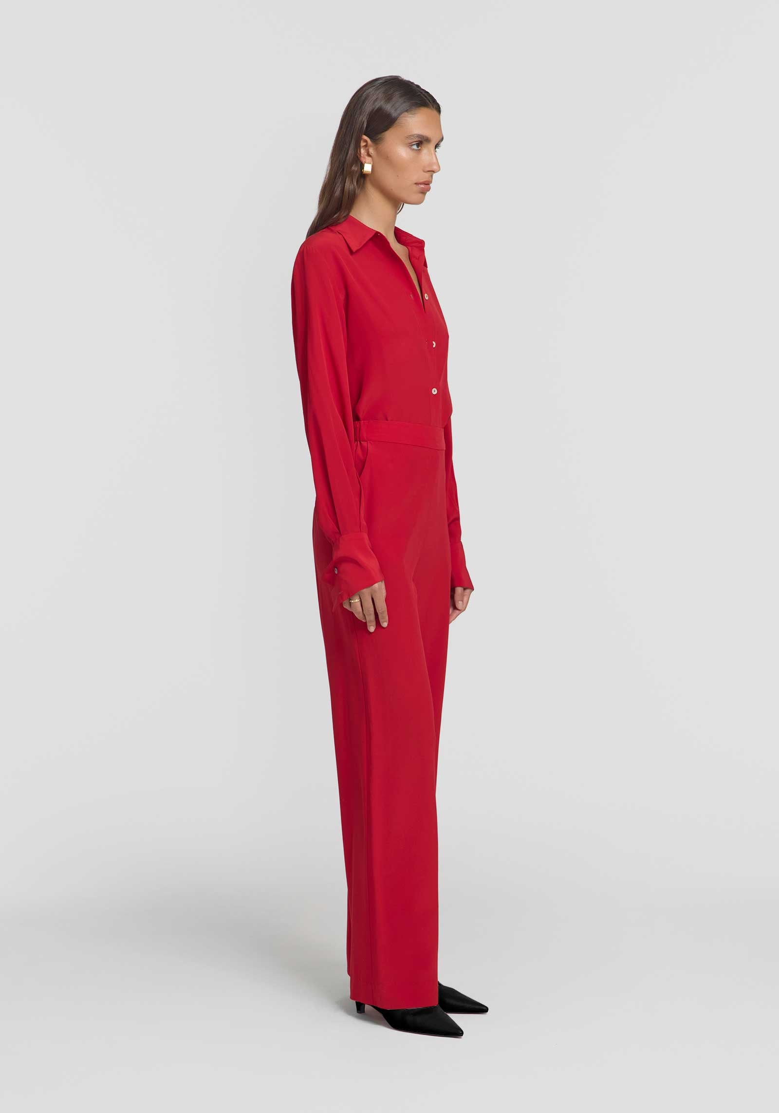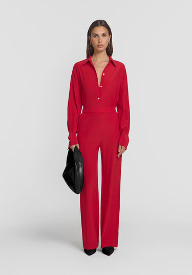 Inspired by the vibrant hues of the Mediterranean, the Quicksilver Pant is crafted from luxurious silk in a bold, striking red. Showcasing a high-rise, wide-leg silhouette and an elasticated back, it’s finished with a flat front waistband and pockets. Style with the Fantasy Bustier or Antidote Shirt in the matching hue for a statement look, or ground it with foundational tones for a refined contrast.