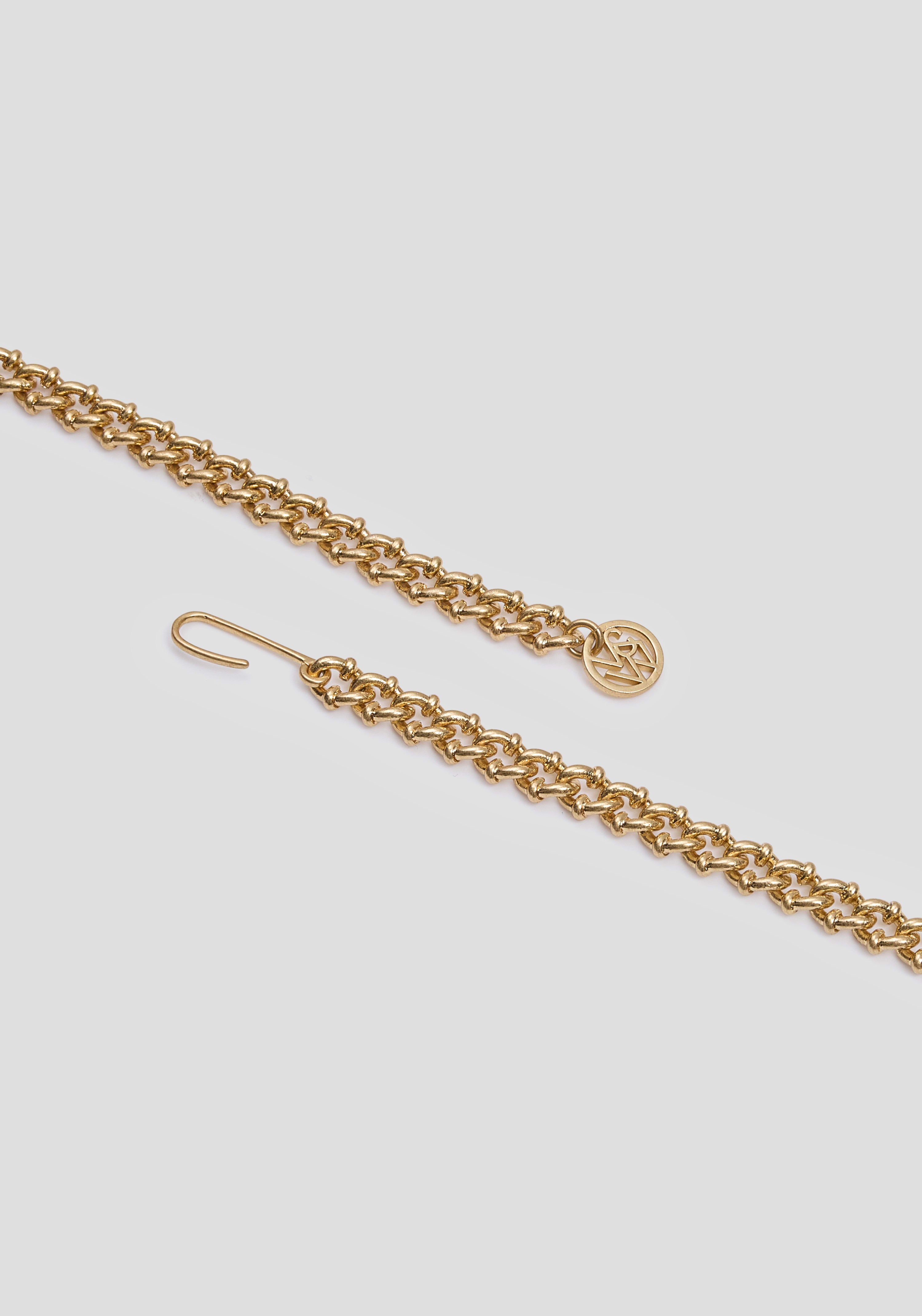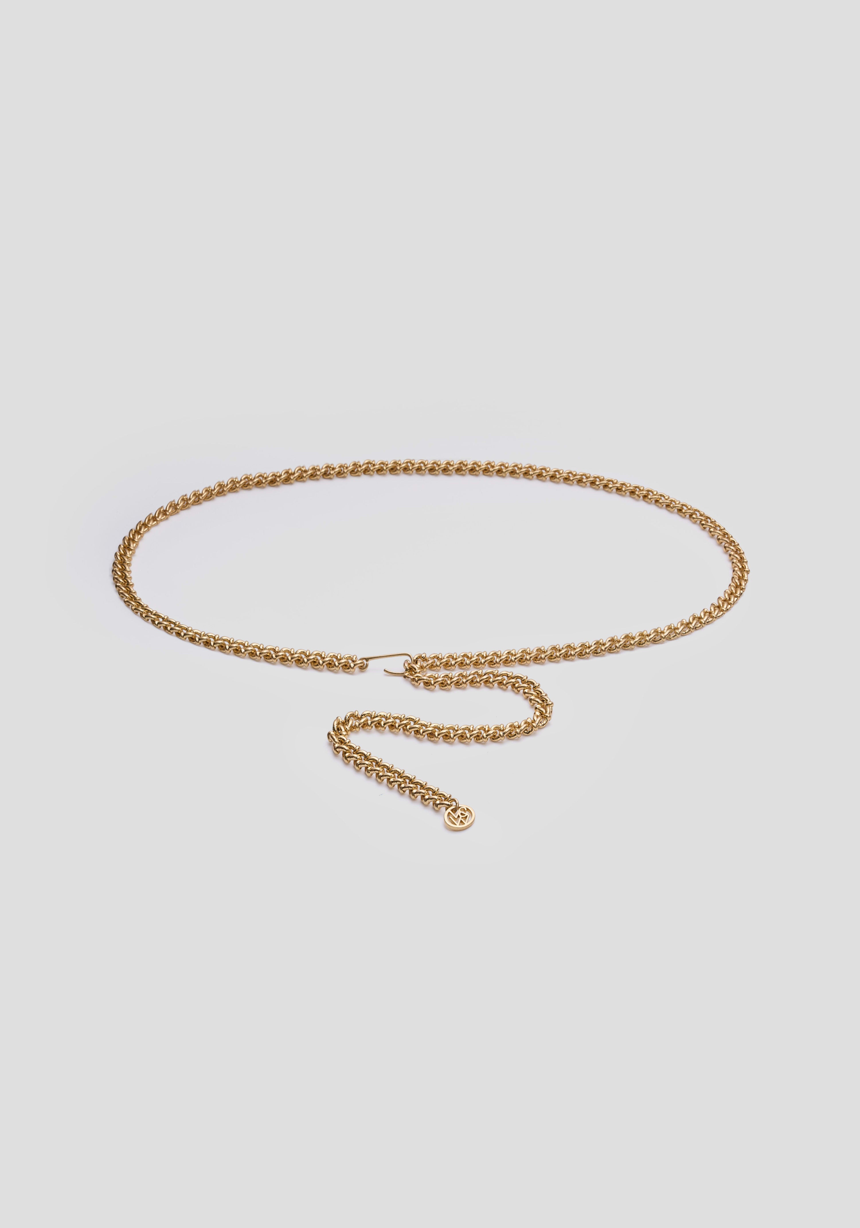 Add distinct structure to your outfitting with the Rick Belt, a statement brass chain accessory plated in antique gold. With a hook closure, it can be styled at any length, embracing versatility while adding confident, creative expression.