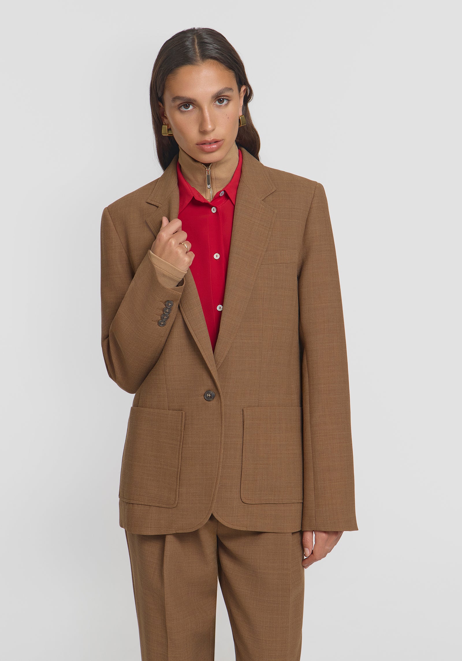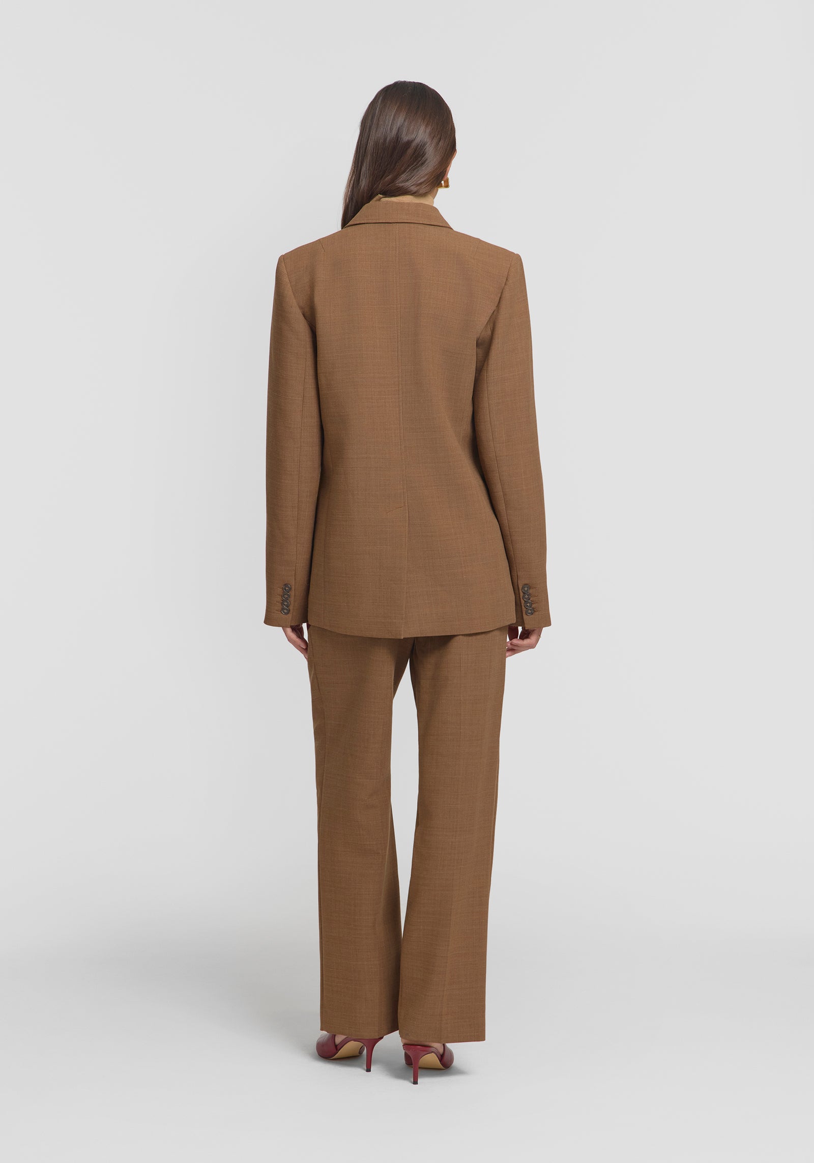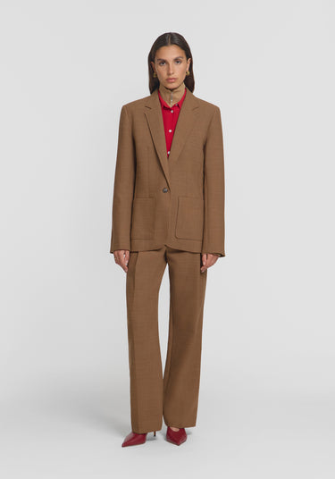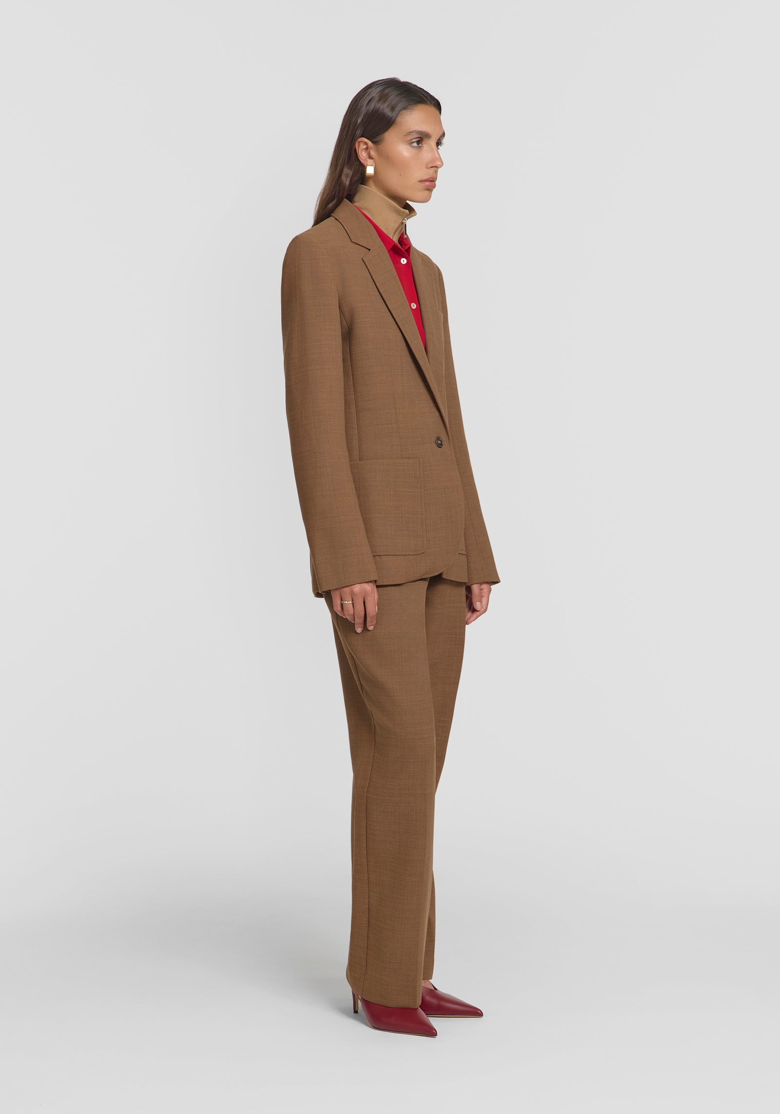 The Rothschild Blazer embodies sophisticated, timeless tailoring, crafted from a versatile brown wool blend. This single-breasted design features subtle shoulder padding, a relaxed waist, and a centre back vent for effortless structure. Finished with a signature logo button, style it with the Hightower Trouser for a refined, work-ready look.