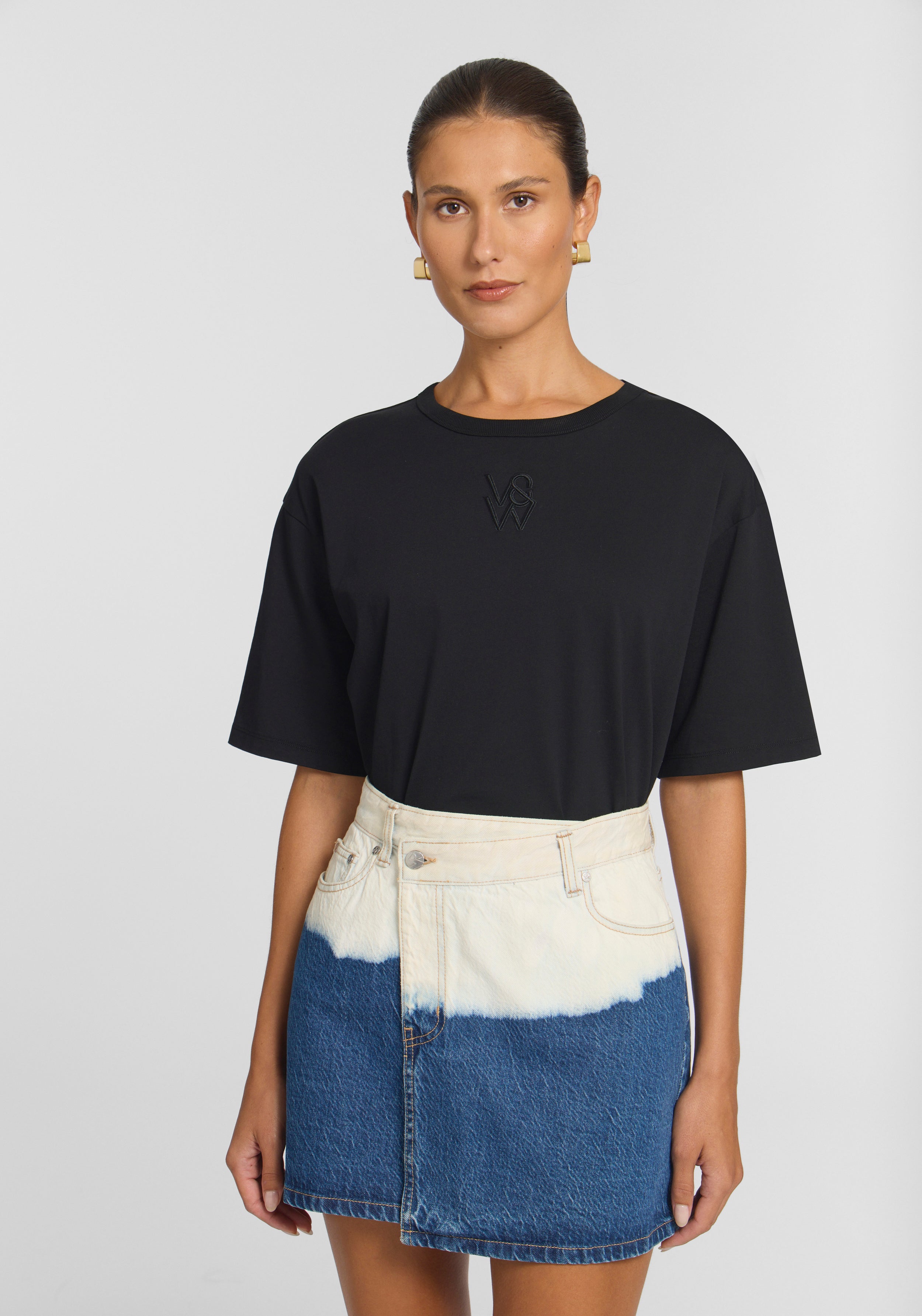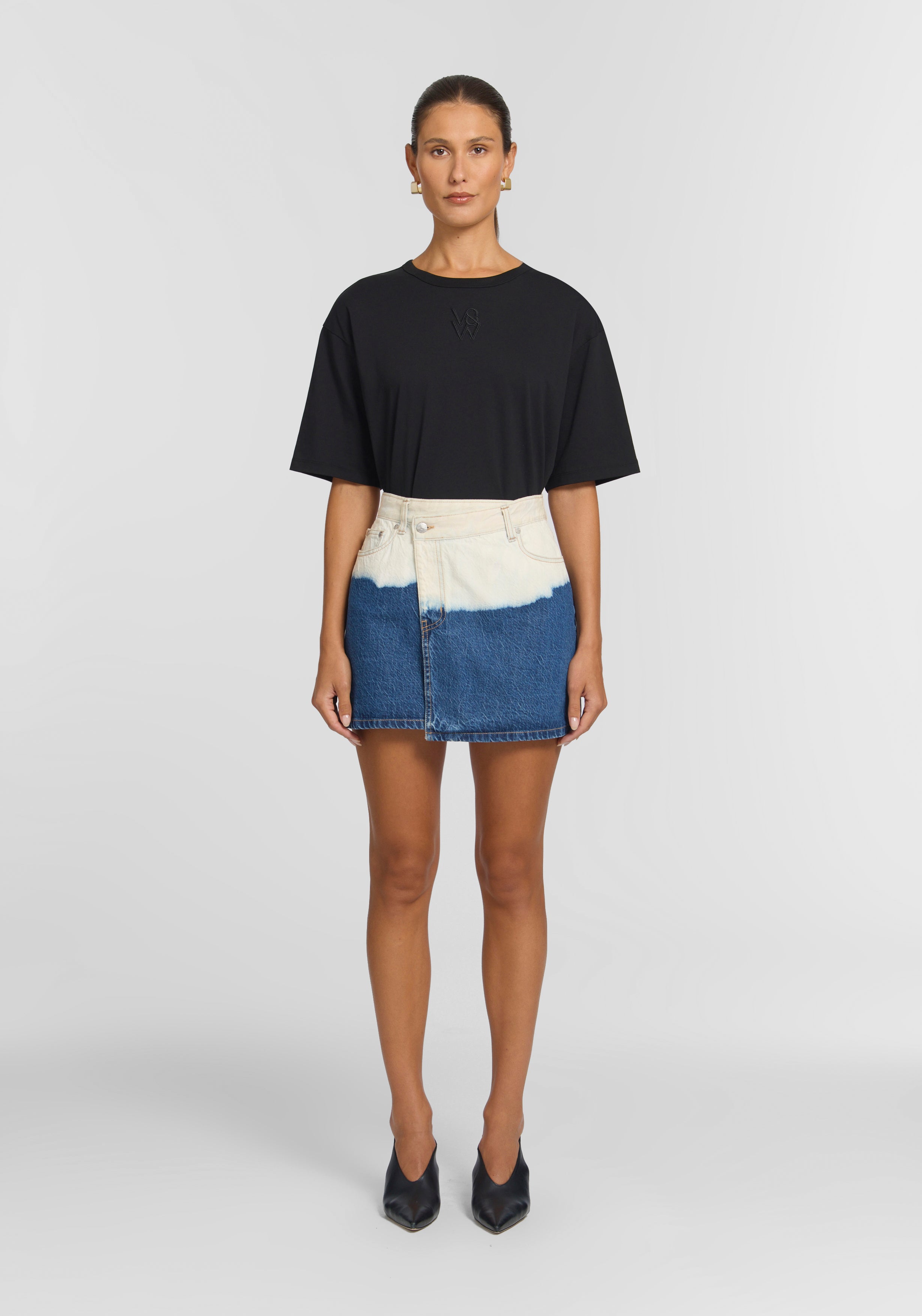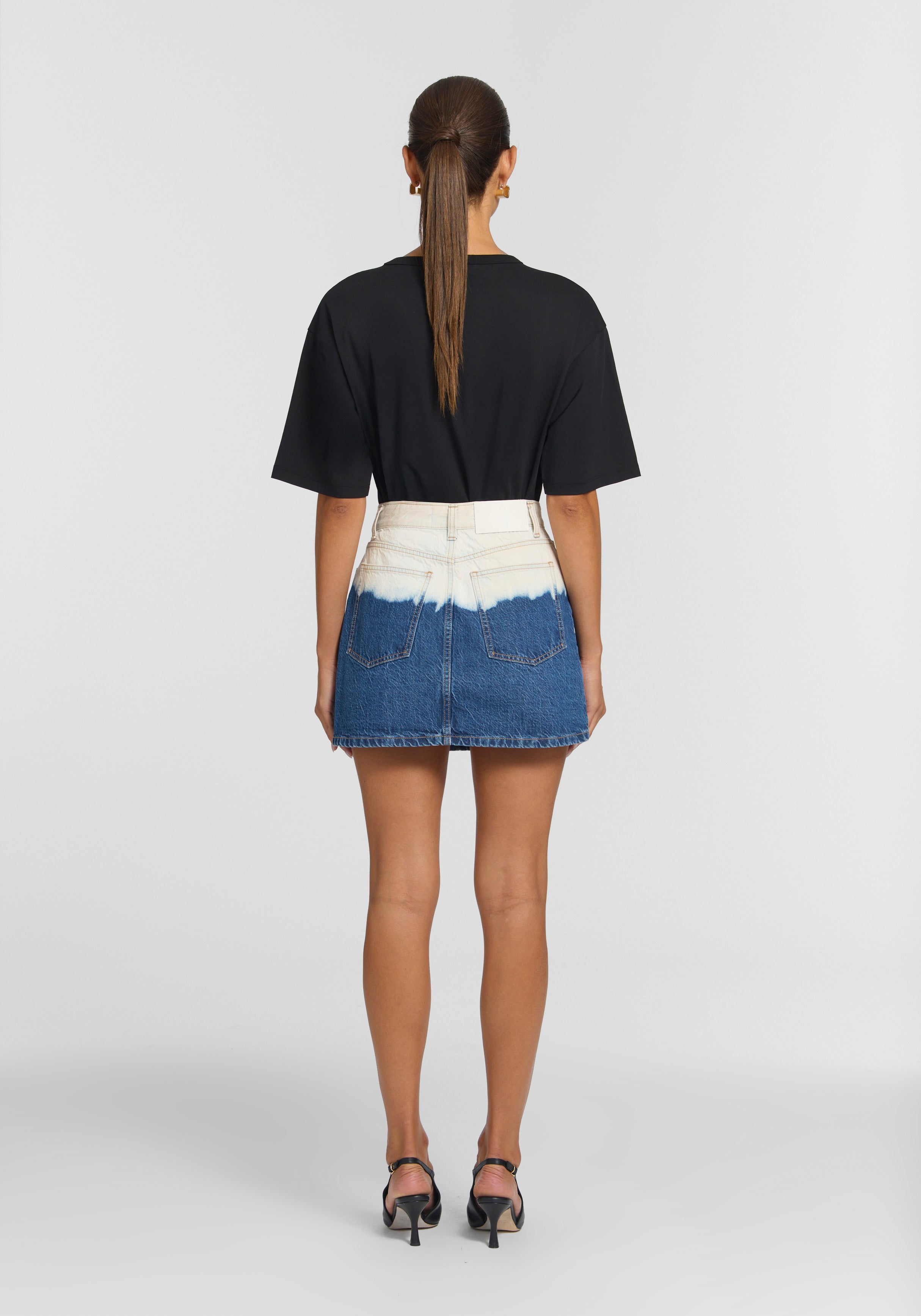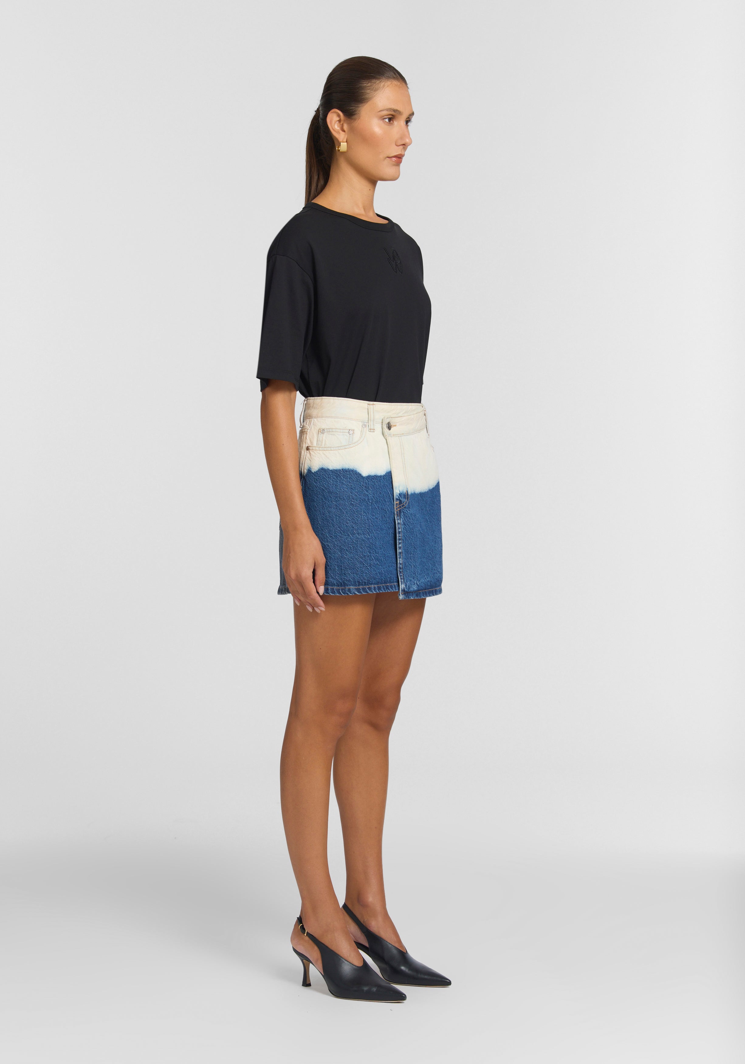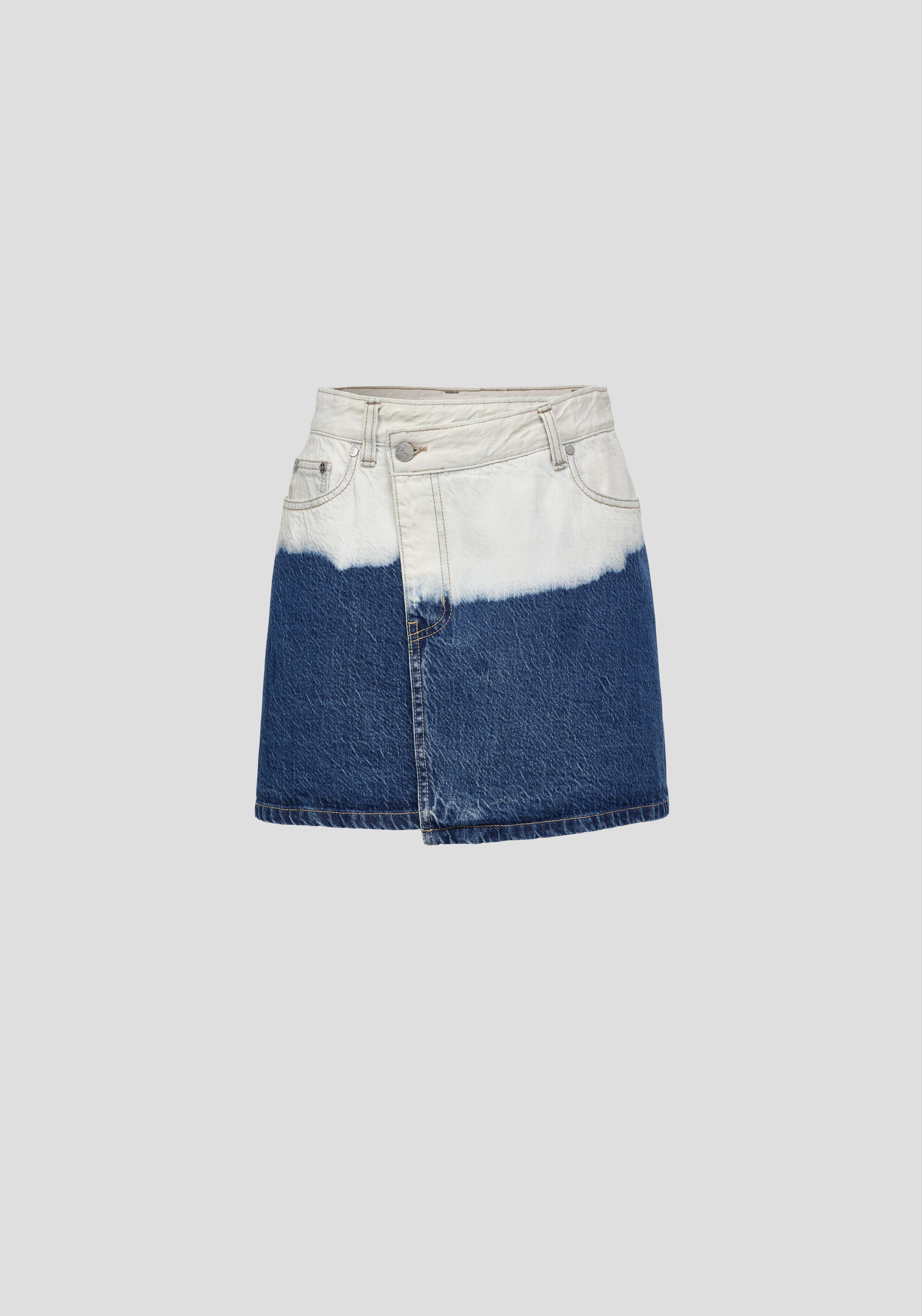A statement denim mini, the Silverado Skirt brings nuanced ease to your rotation, hand-dyed in an ocean-inspired ombre wash, echoing the waves of the sea. Showcasing a high-rise A-line silhouette with a front wrap detail, it’s finished with tan stitching and signature accents, including an ivory logo leather patch and branded hardware.