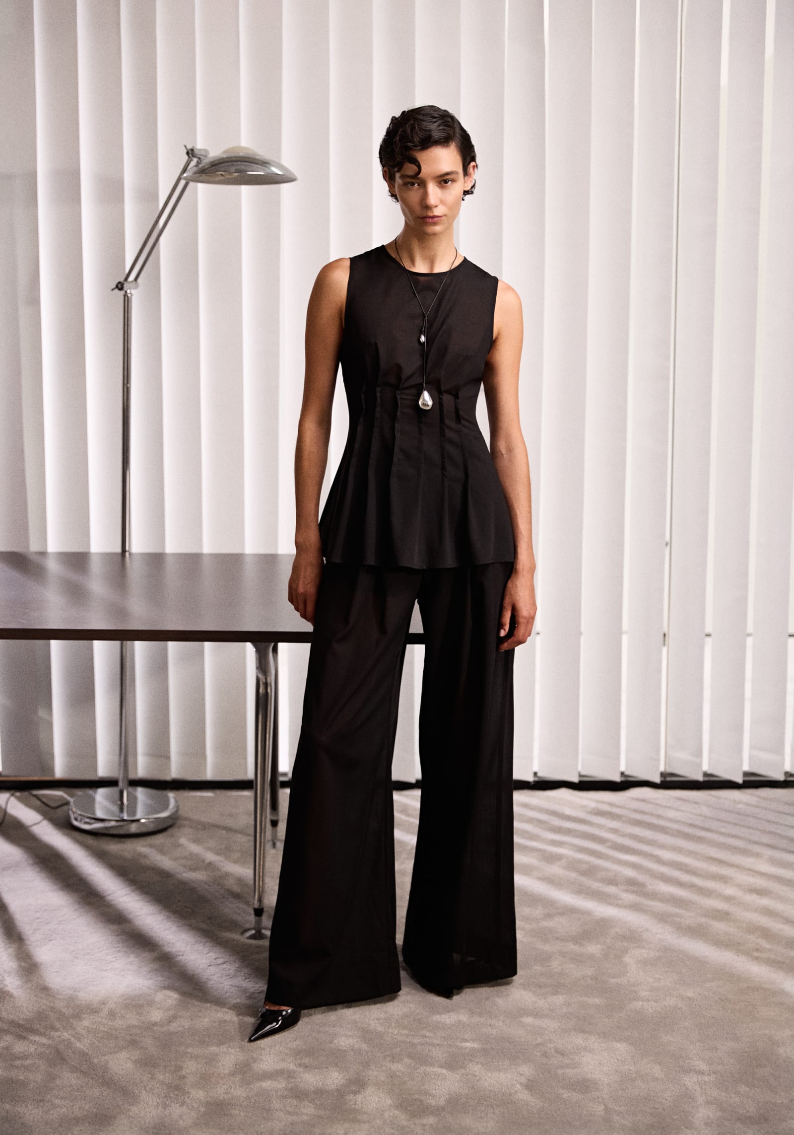 The Singleton Pant, crafted in a lightweight wool blend, balances tailored precision with fluid ease. Cut in a relaxed silhouette that sits at the waist, it features belt loops and pockets, serving as a foundational anchor within the wardrobe. Pair with the Laureate Top for a pairing that conveys quiet authority, transitioning seamlessly from work to weekend.