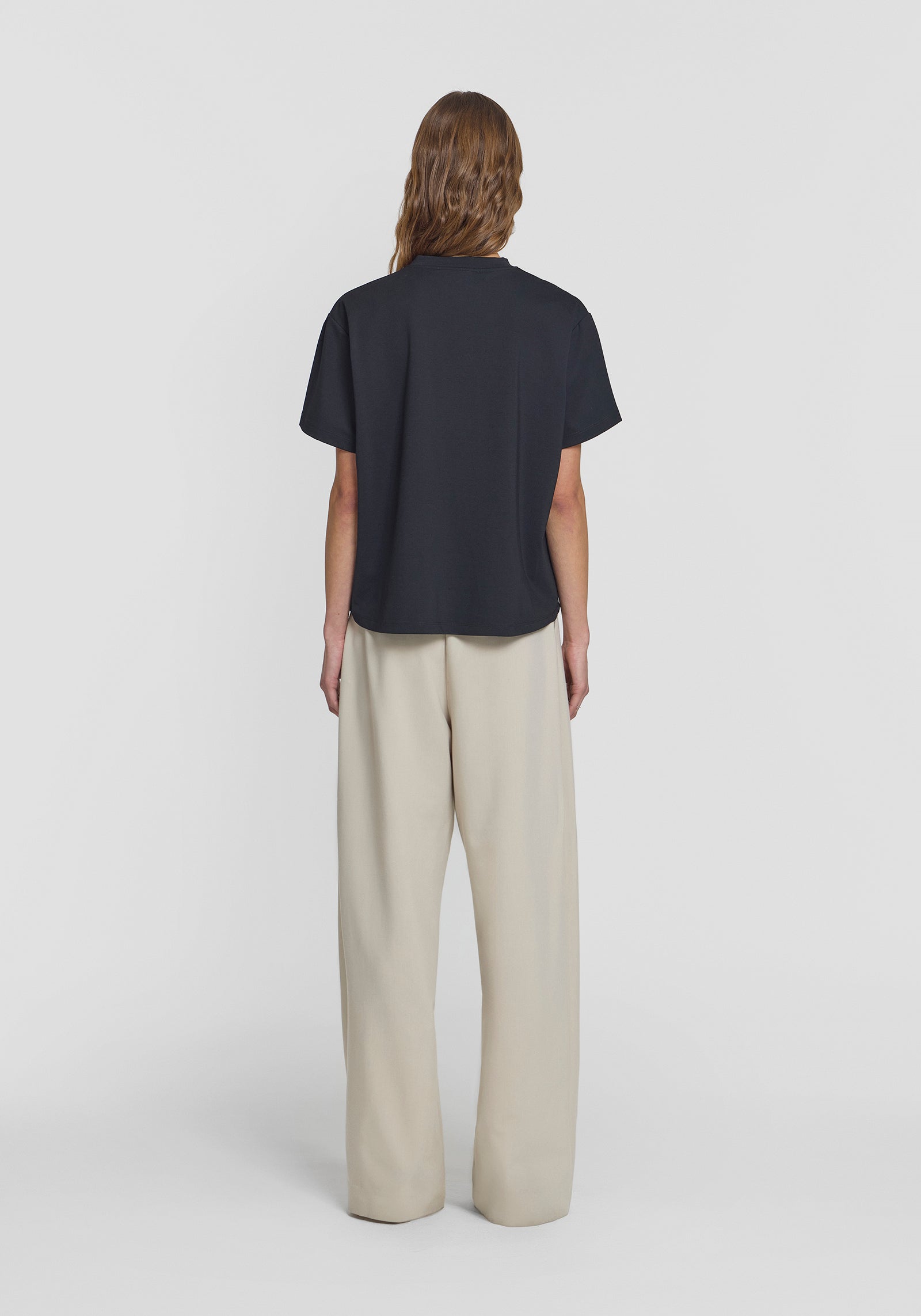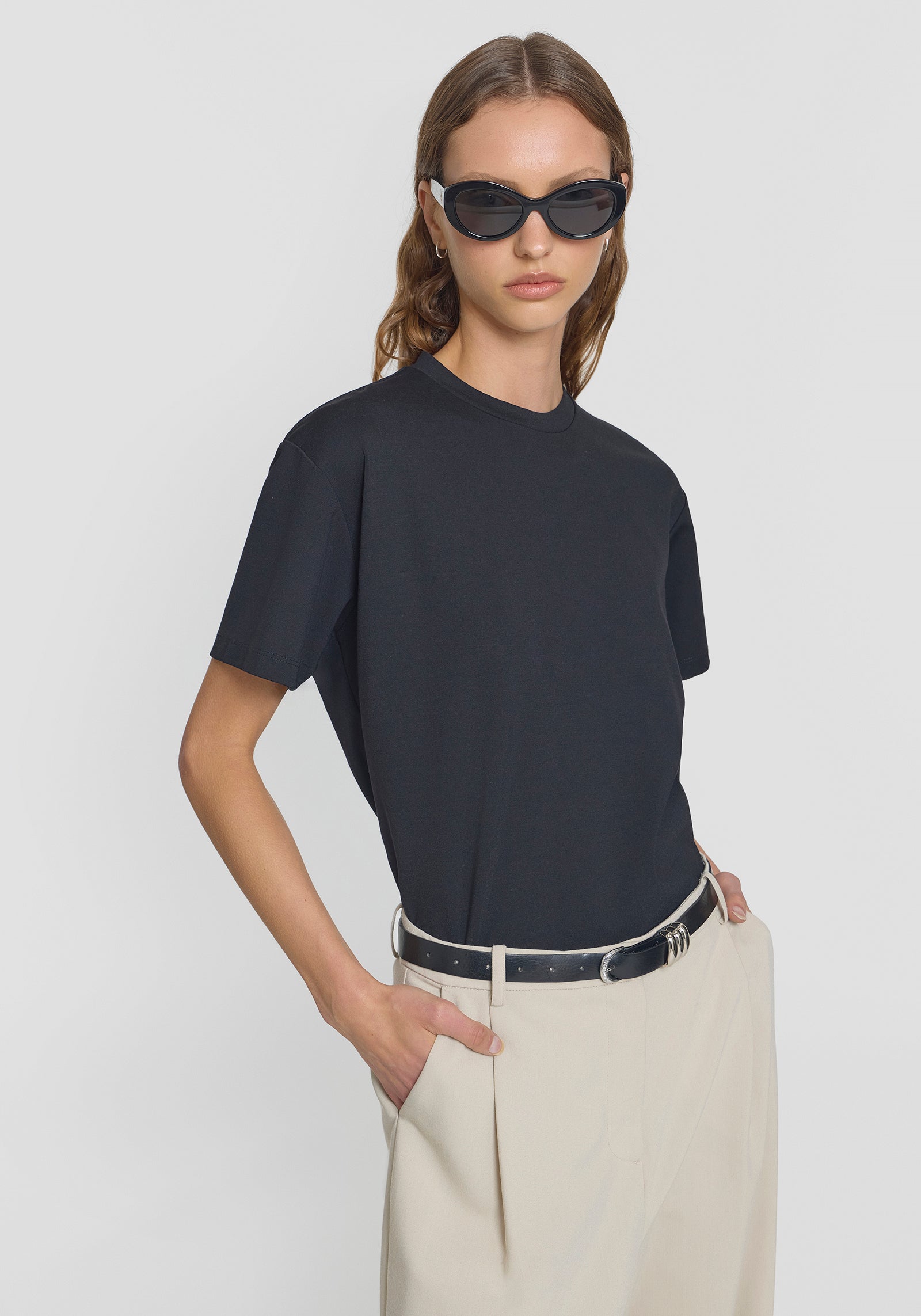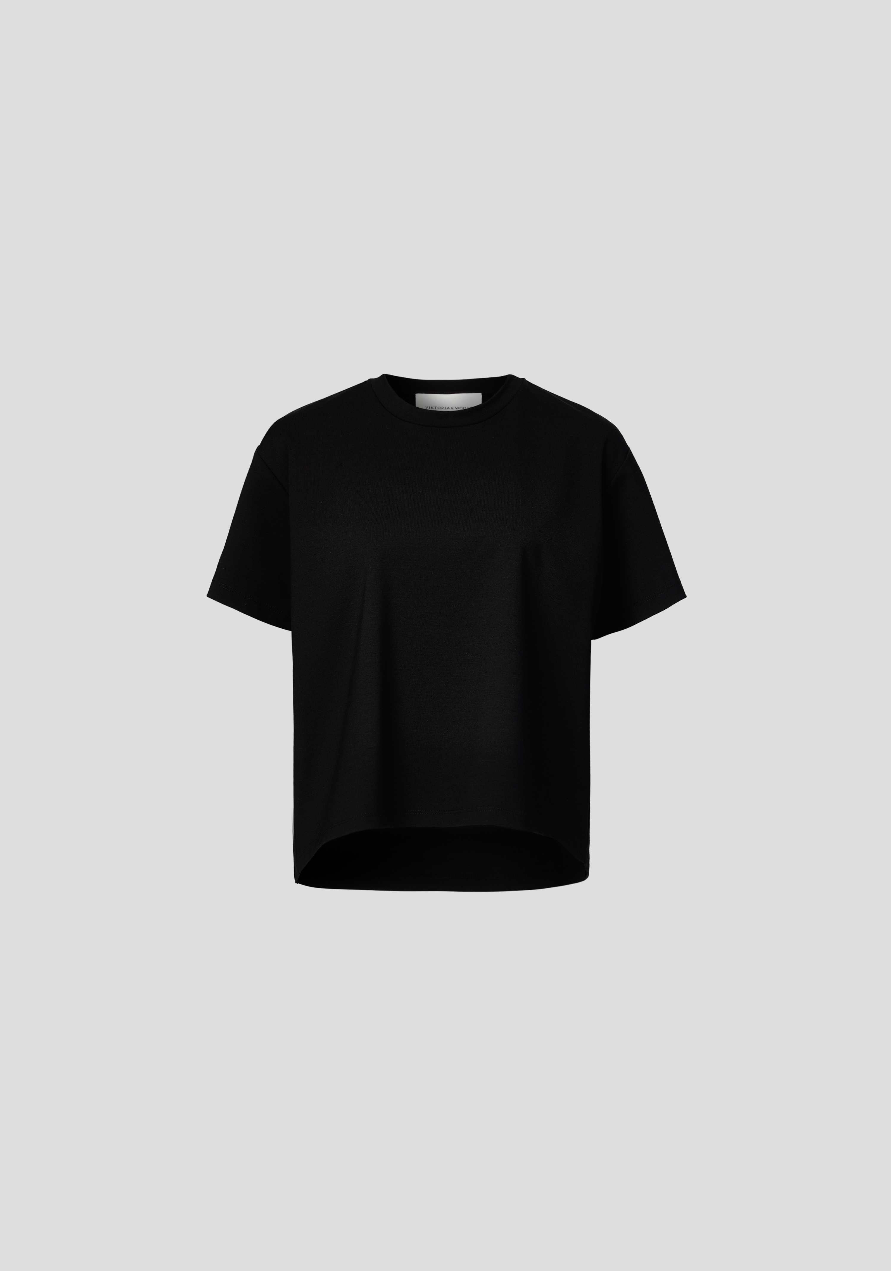 The Stereo Tee in black is a must-have everyday essential, featuring a boxy, cropped silhouette in a luxe ponte fabrication. Designed with a self neck bind and finished with a tonal V&W at the centre back neck. Versatile and easy to wear, it's the ultimate wardrobe staple for effortlessly chic style.
