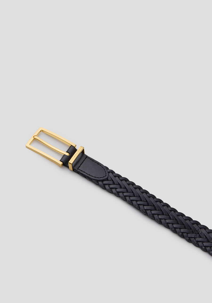 Effortlessly versatile, the Tommy Braided Belt is crafted from black leather with a braided construction and antique gold buckle. Adjustable to any size, it can be worn at the waist or hips, adding textured refinement to any look.