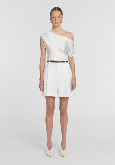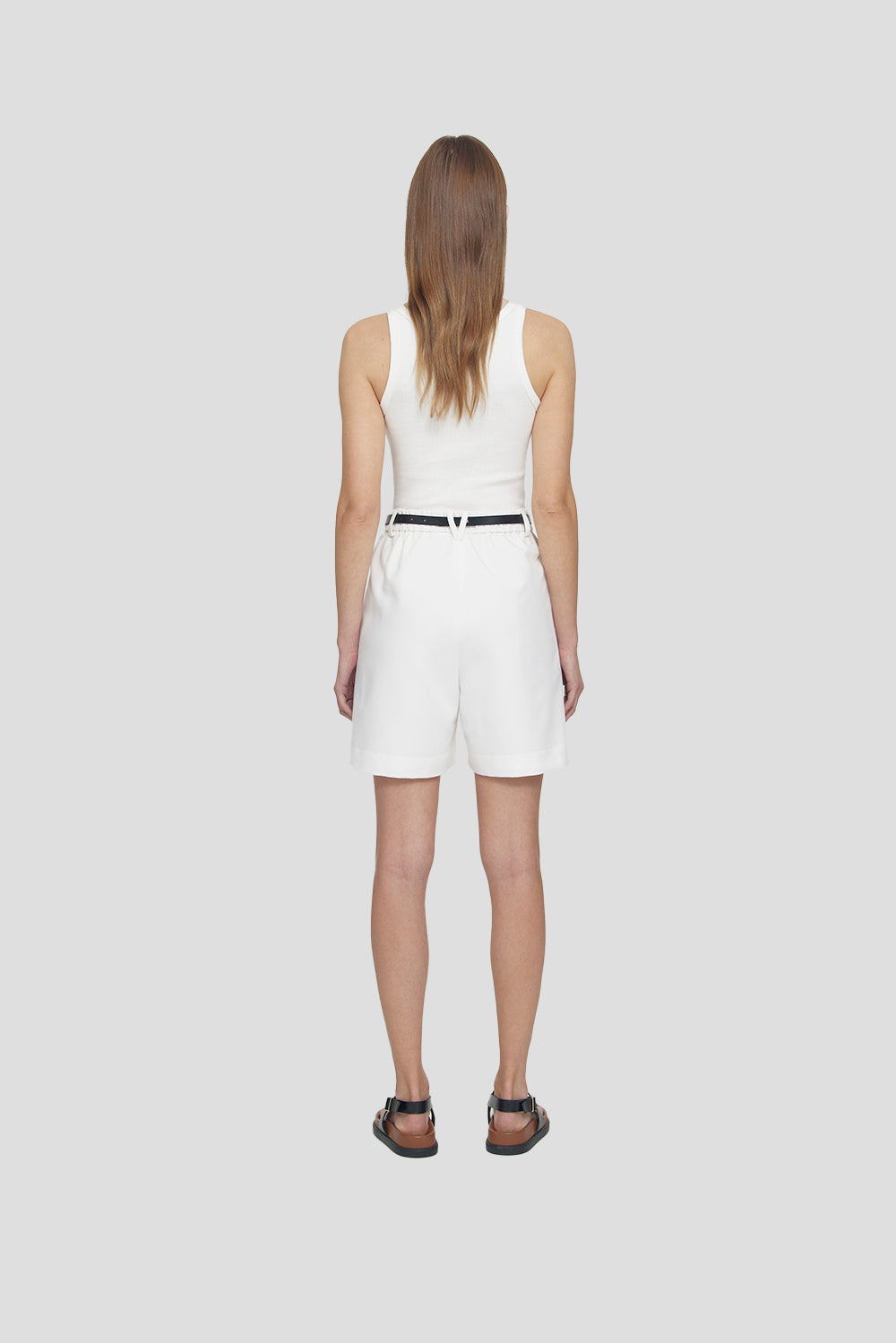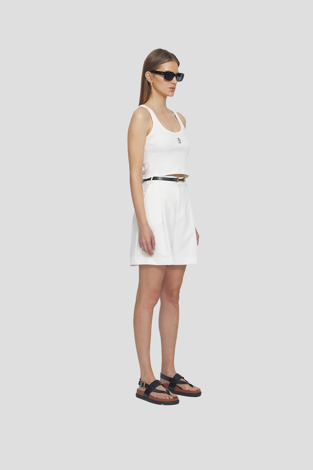 Update your tailoring with the Unisex Granger Short in ivory, an effortless wardrobe staple. With a tailored waistband and front tuck detailing, this longline short features a V&W metal ring on the front belt loop and offers a relaxed, comfortable fit. Pair with V&W cotton basics and sandals for a chic, classic look.