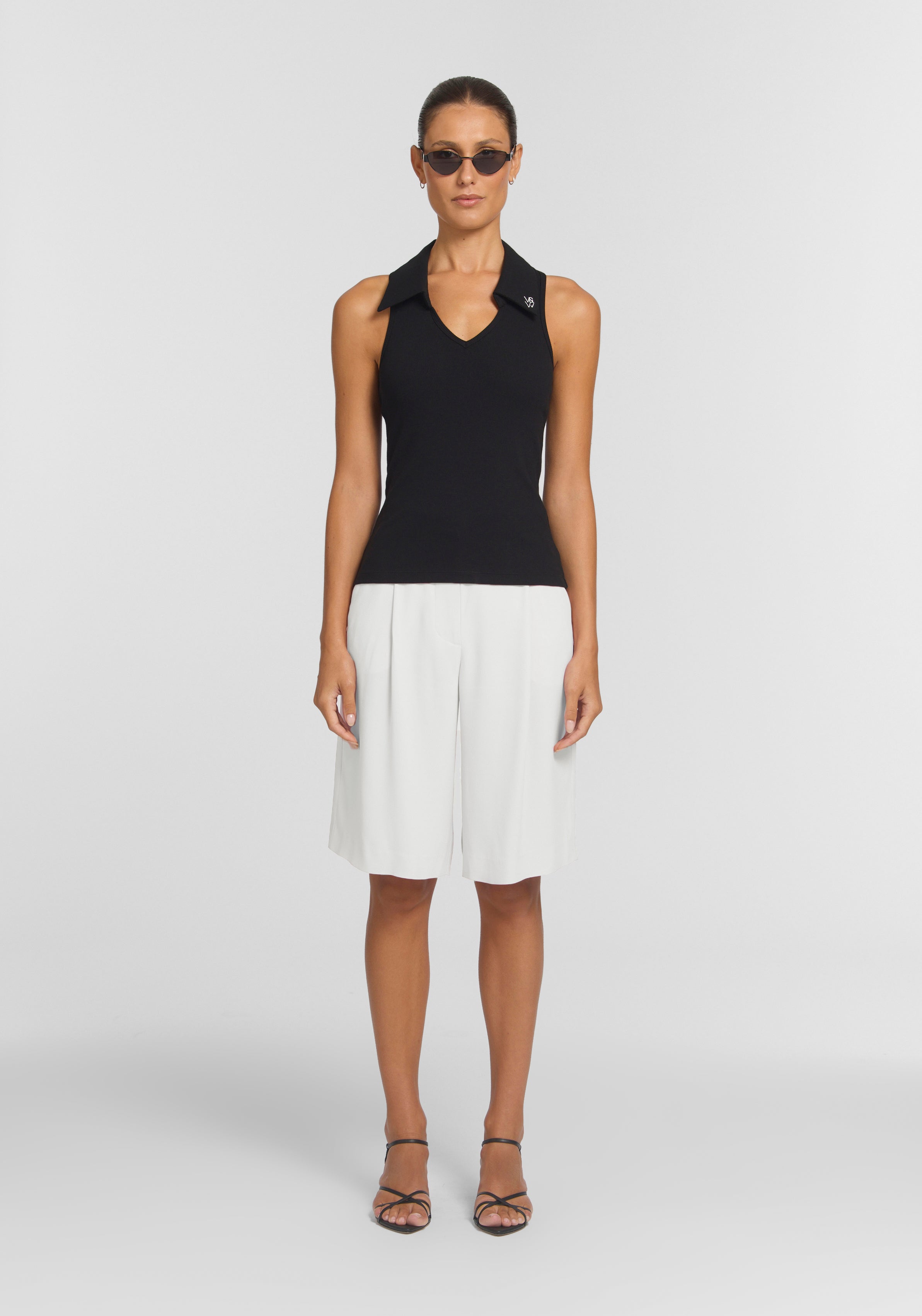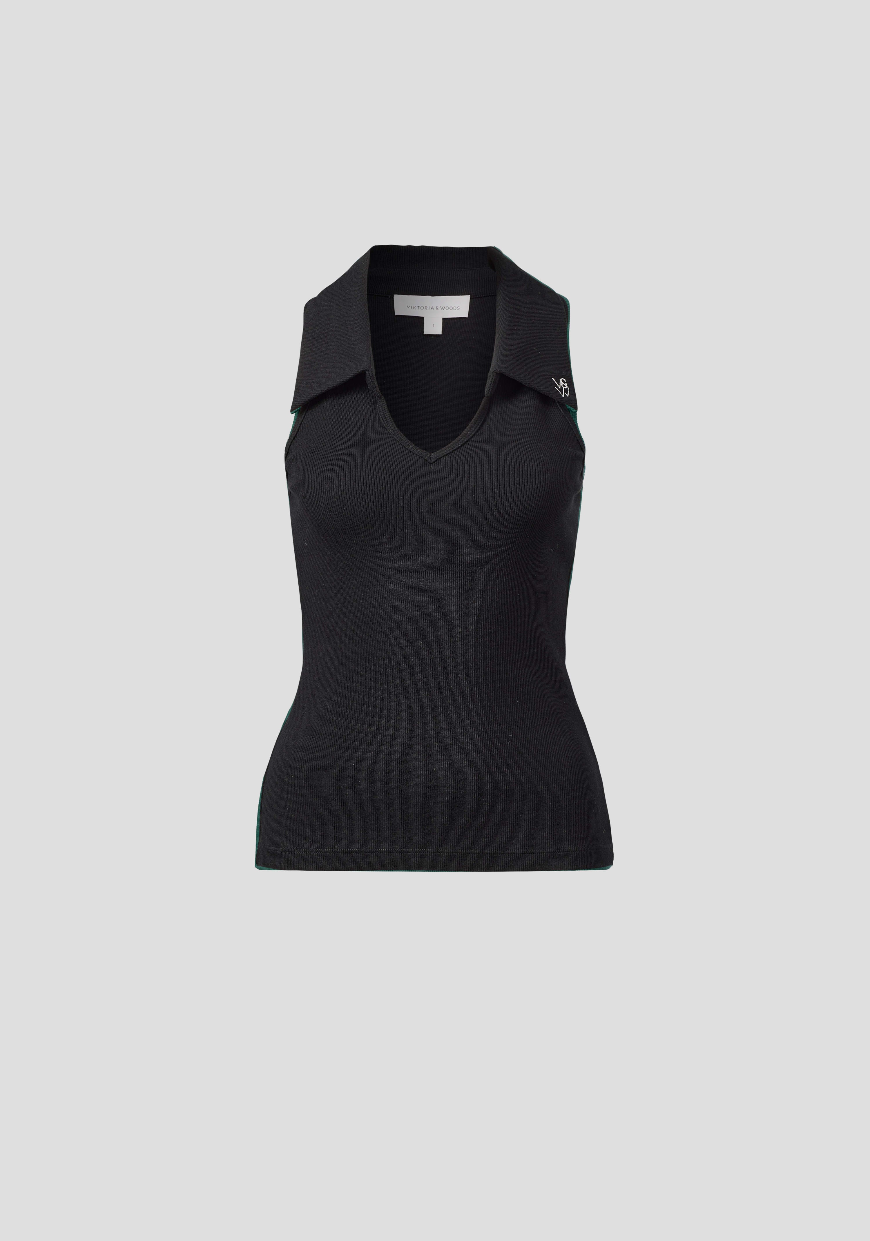The United Top is a precise essential, crafted from our signature 2x2 organic cotton rib in black. Featuring a fitted silhouette with a curved V-neckline and collar, it’s finished with contrast V&W embroidery. Style with the Monologue Short for a pared-back monochrome moment, or with denim for everyday ease.
