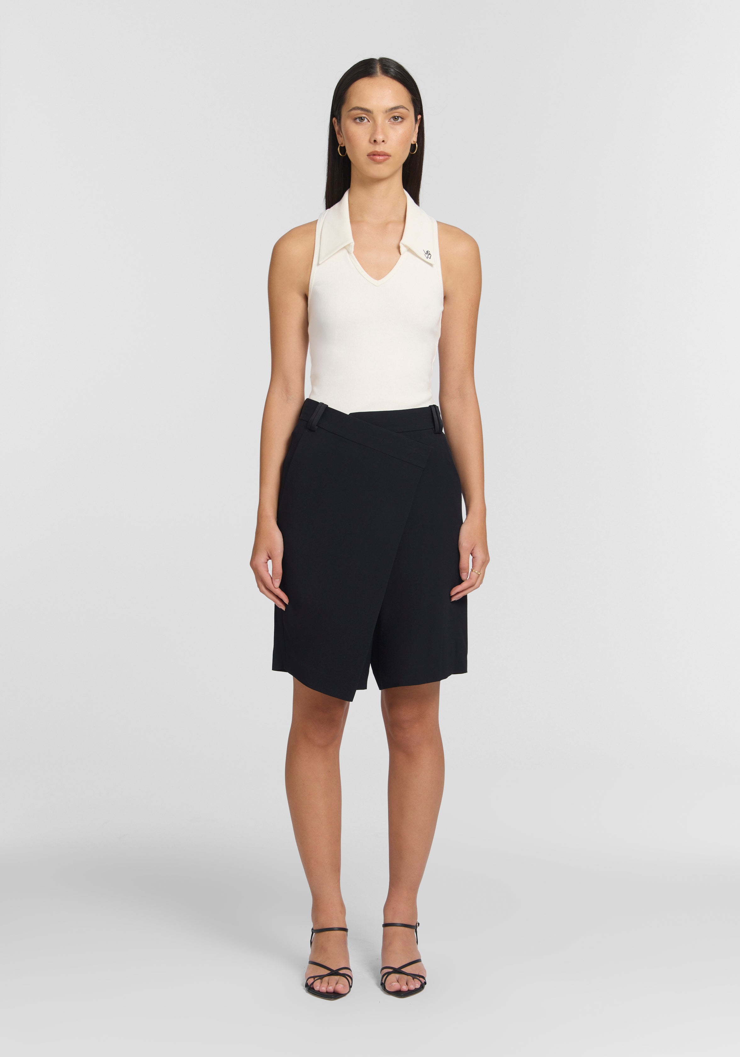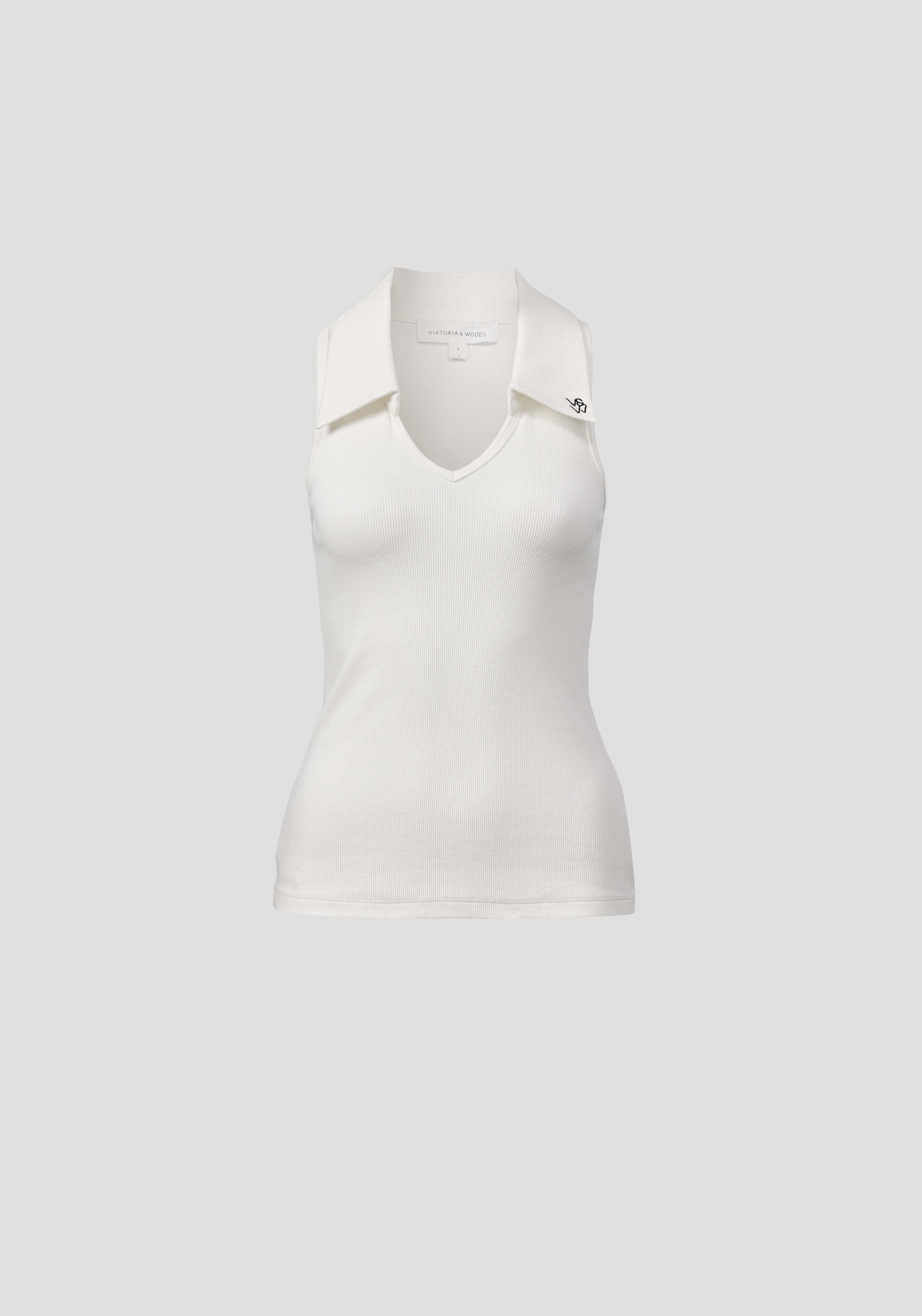 The United Top is a precise essential, crafted from our signature 2x2 organic cotton rib in ivory. Featuring a fitted silhouette with a curved V-neckline and collar, it’s finished with contrast V&W embroidery. Style with the Bellatrix Short for a pared-back monochrome moment, or with denim for everyday ease.