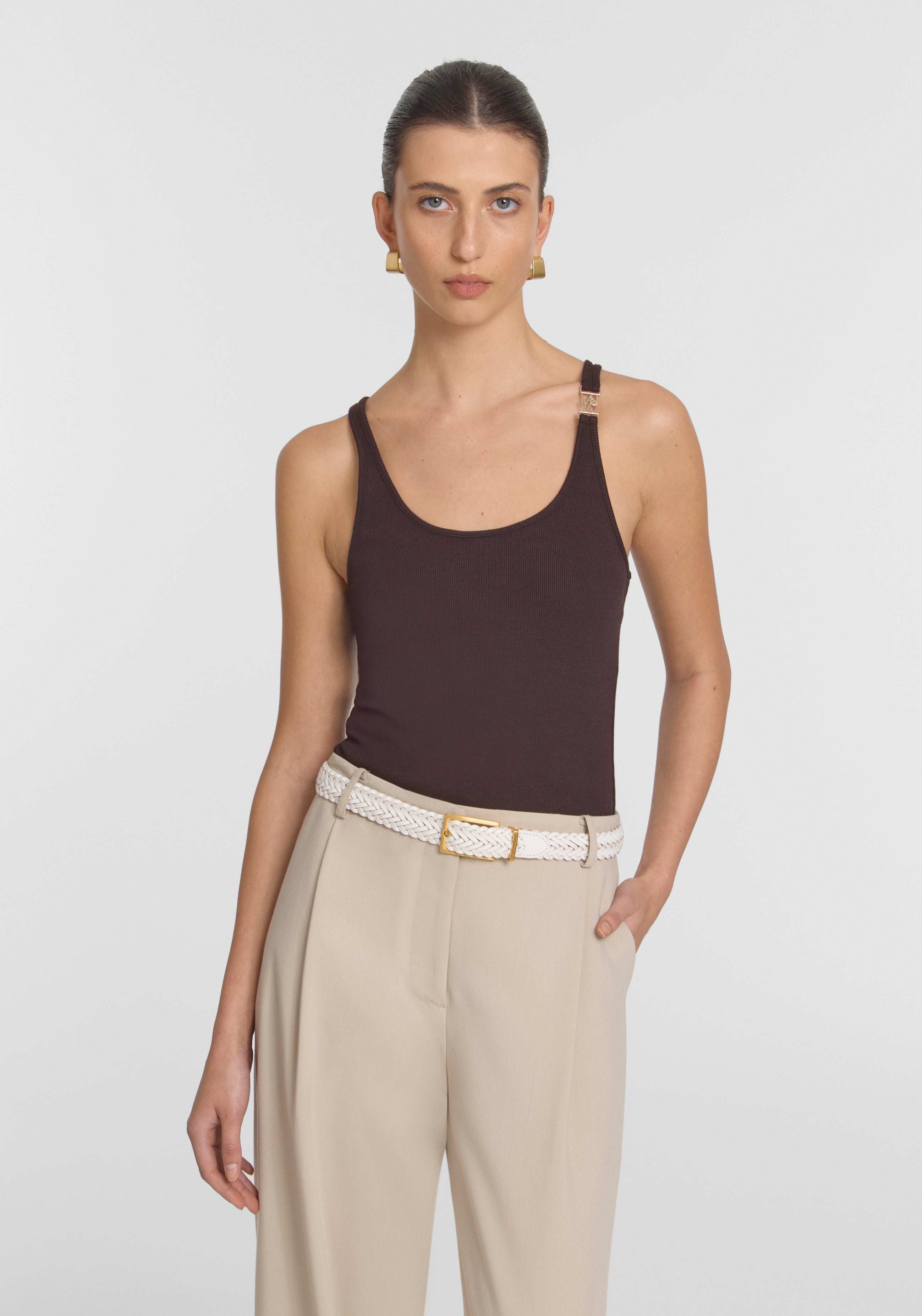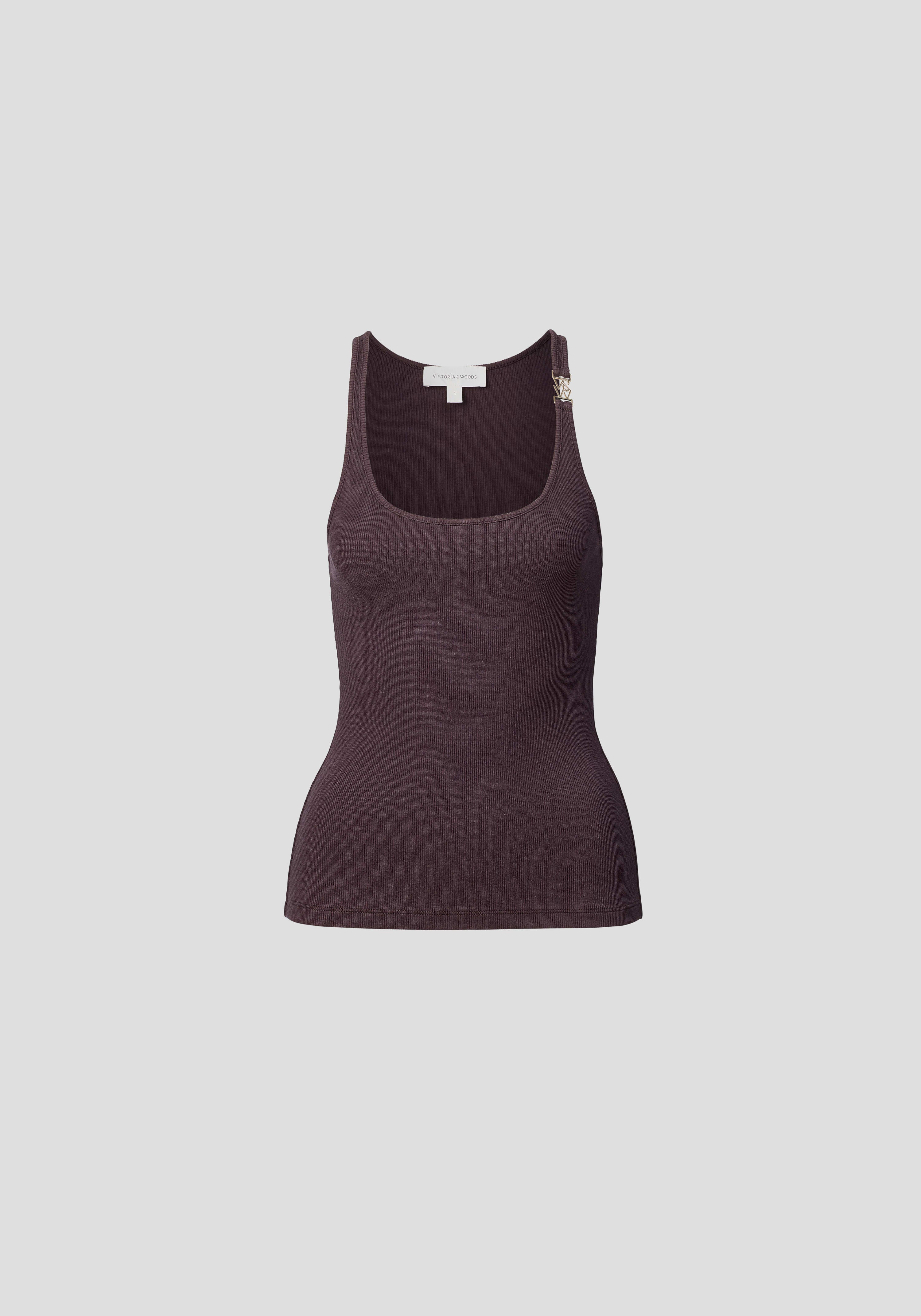 Bring new life to your everyday essentials with the Victor Tank, an elevated take on the classic tank top. Crafted from our signature 2x2 organic cotton rib in a dark chocolate hue, this fitted silhouette showcases a flattering scoop neckline and sleek V&W hardware on the strap. The perfect starting point for any outfit, it exudes effortless luxury with every wear.