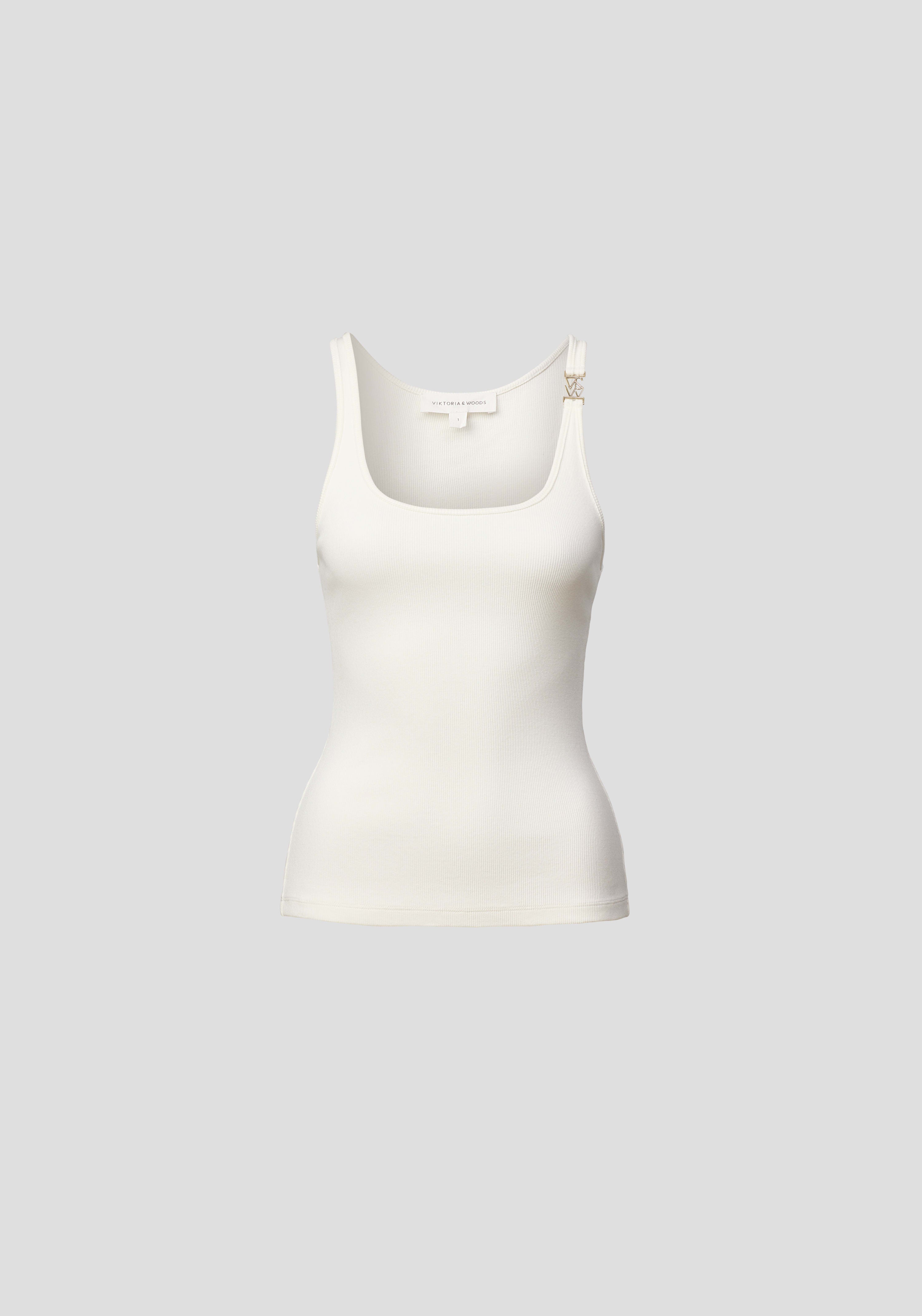 Bring new life to your everyday essentials with the Victor Tank, an elevated take on the classic tank top. Crafted from our signature 2x2 organic cotton rib in ivory, this fitted silhouette showcases a flattering scoop neckline and sleek V&W hardware on the strap. The perfect starting point for any outfit, it exudes effortless luxury with every wear.