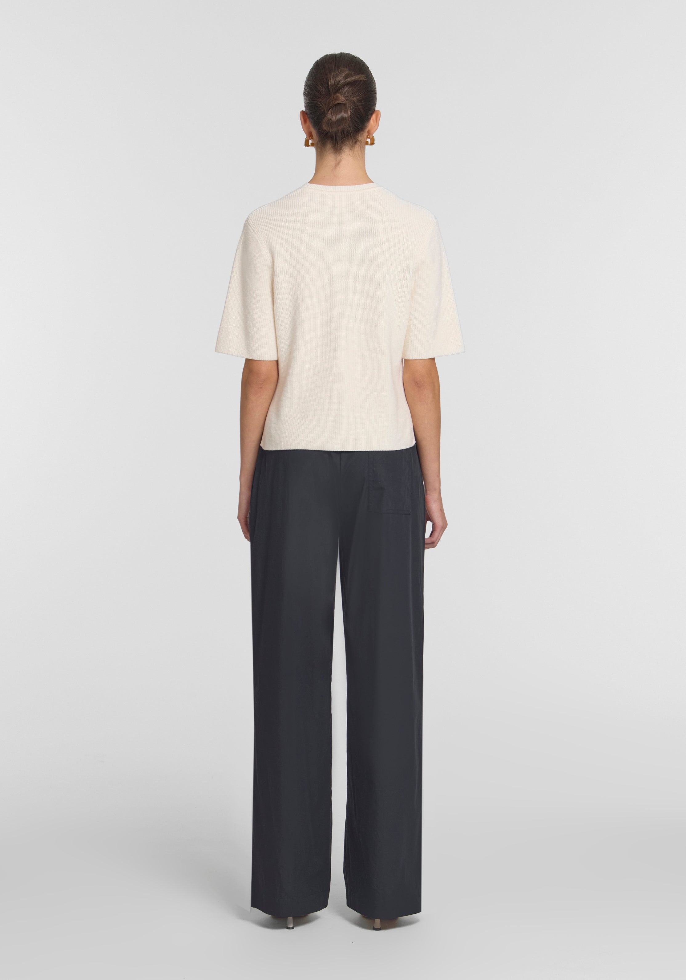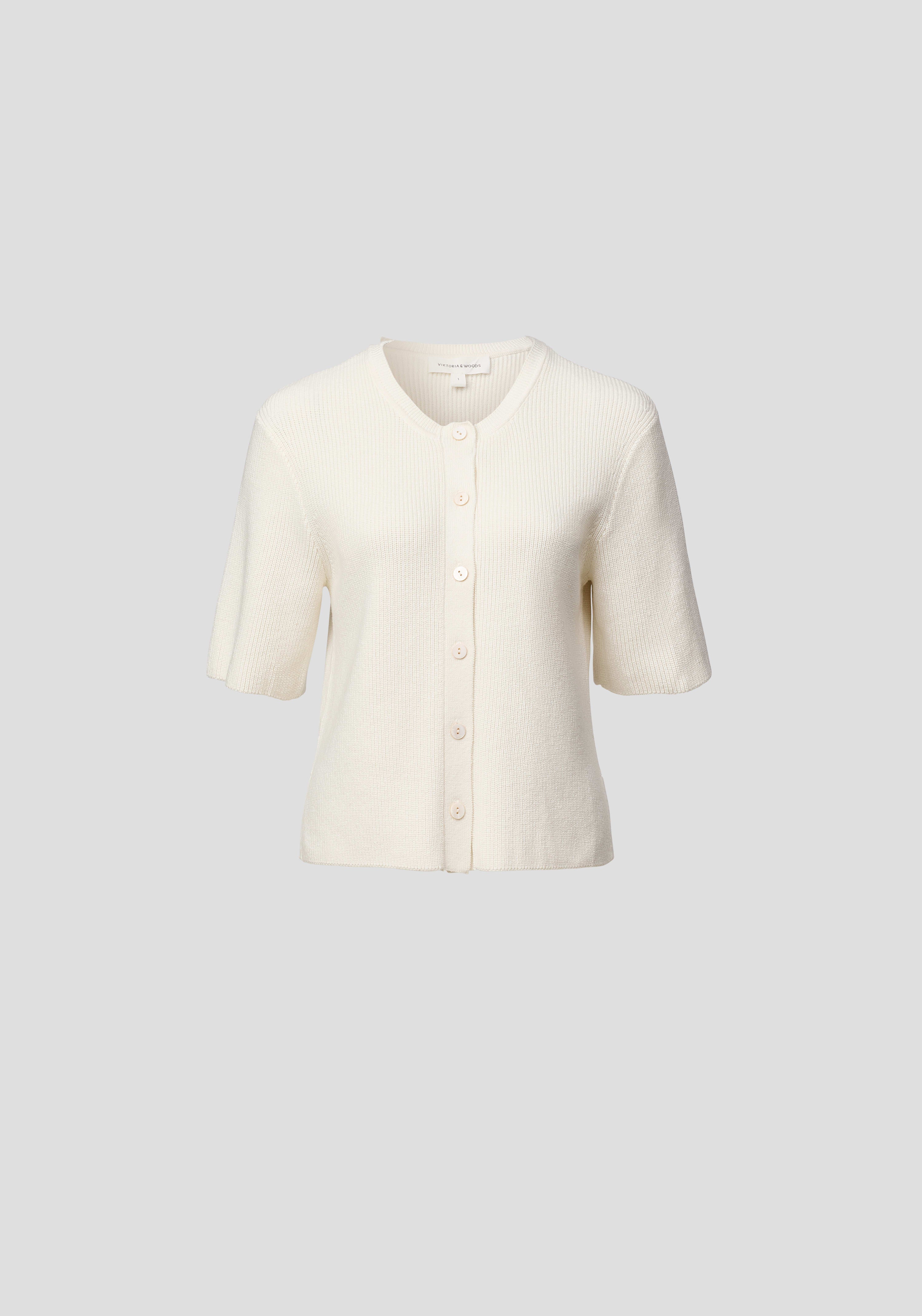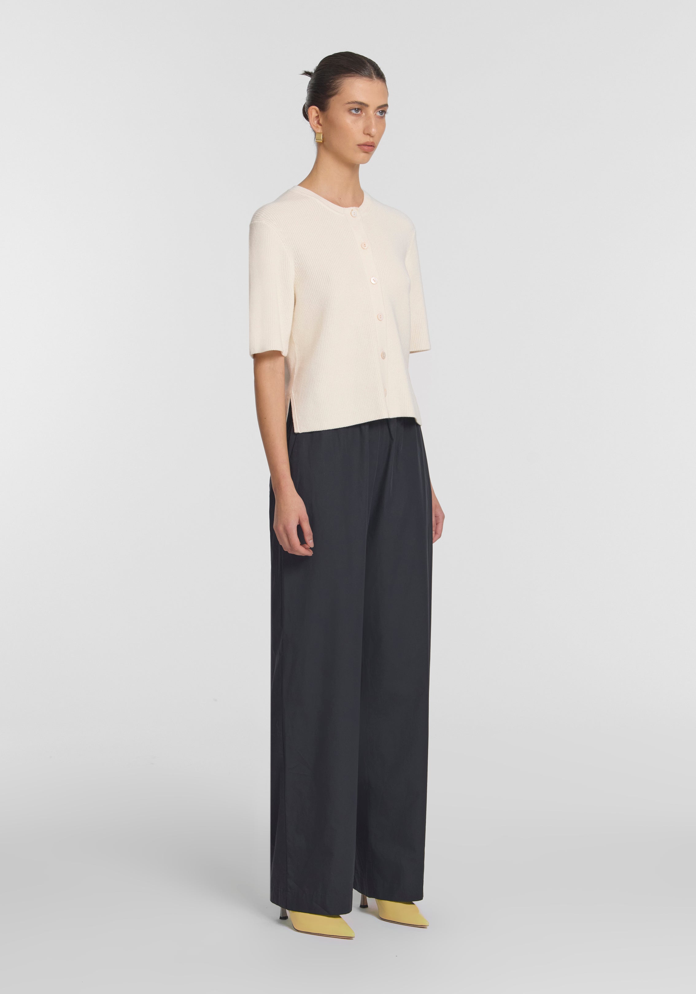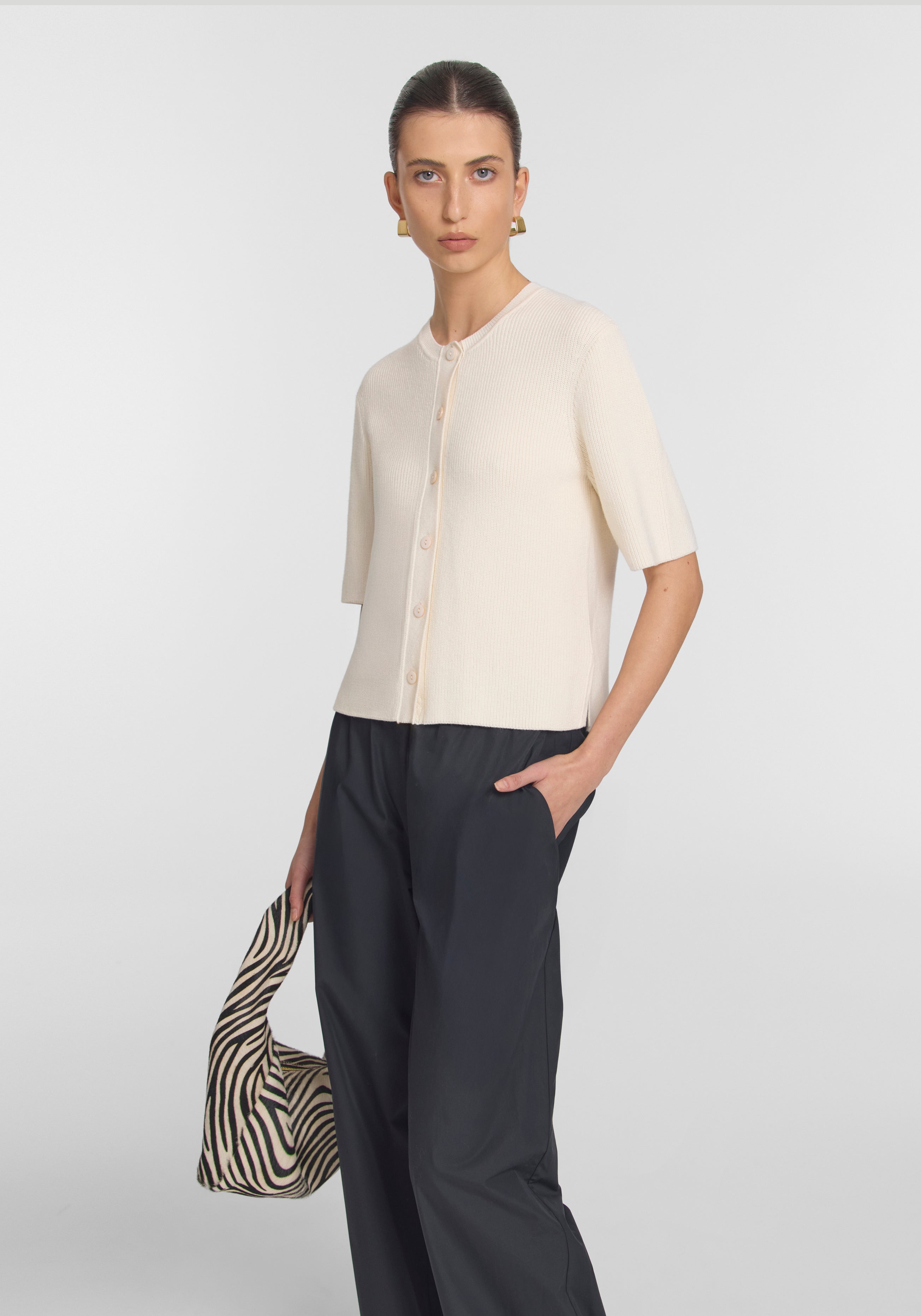Radiate effortless elegance in the Violet Cardigan, crafted from a cotton-wool blend in classic ivory. Offering a gently relaxed fit, crew neckline, and side splits, it’s adorned with shell buttons for a versatile, enduring silhouette.