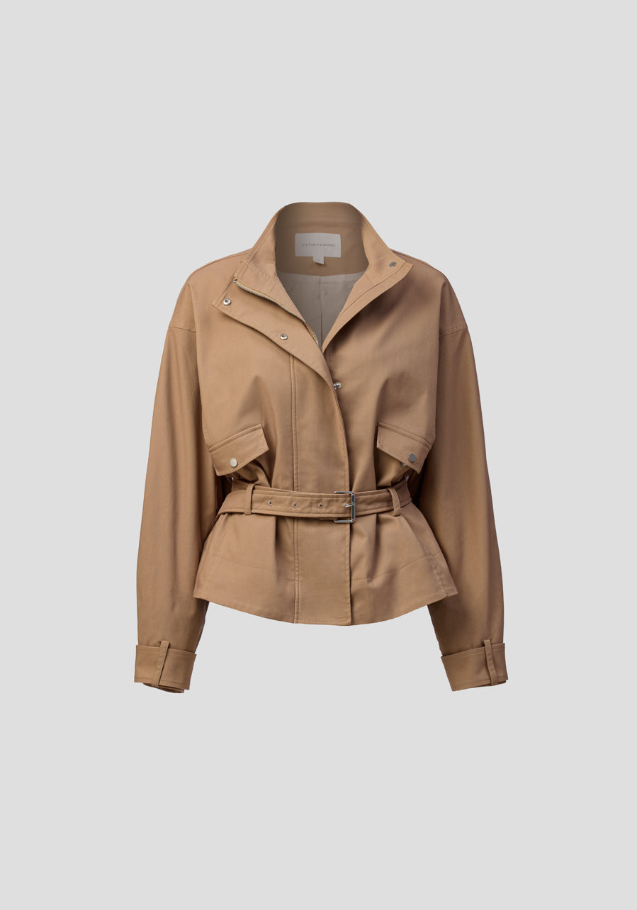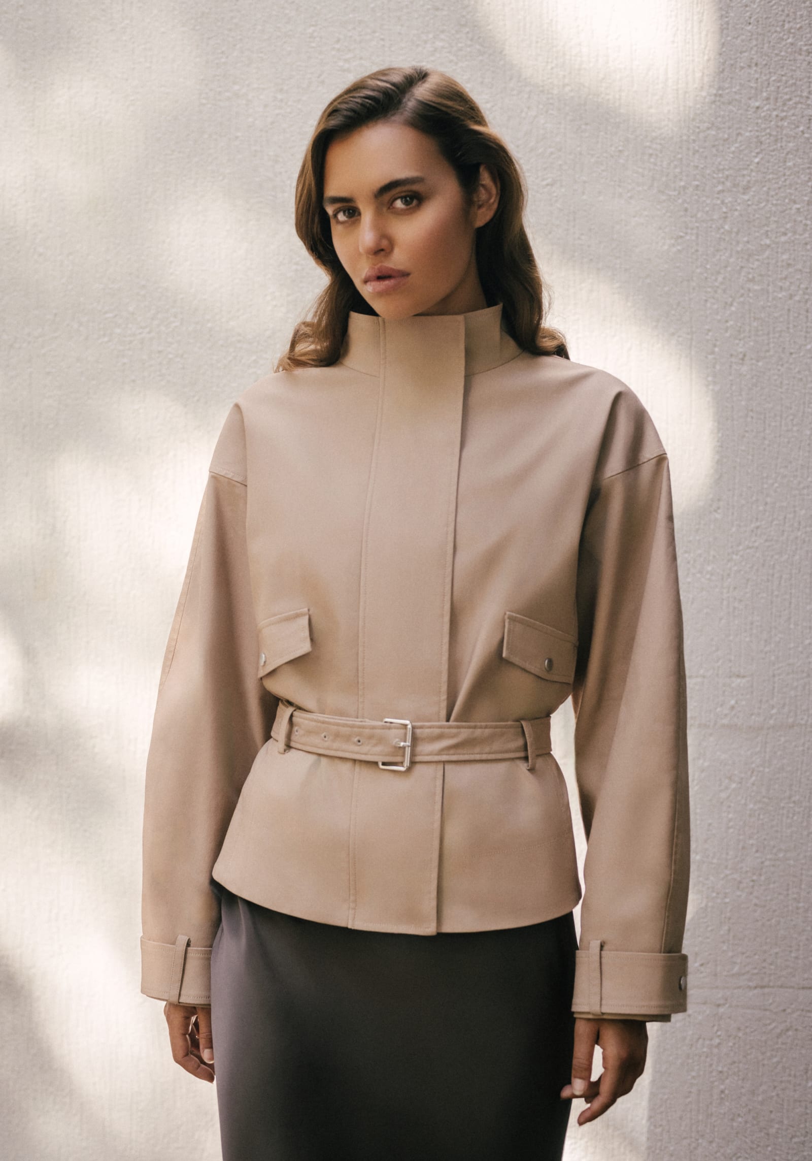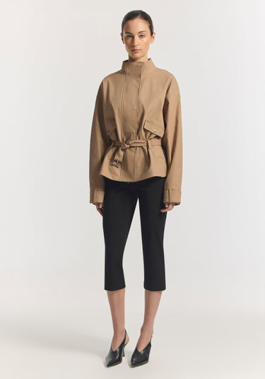 The Whitethorn Jacket defines the modern wardrobe in a warm hazelnut hue, grounded in engineered utility. Cut in a relaxed, single-breasted silhouette with a wide collar stand and concealed placket, it features cocoon sleeves and a removable belt that can be worn cinched for an impactful statement. Pair with the Madden Pant for trackside tailoring that fuses sport utility with high-performance precision.