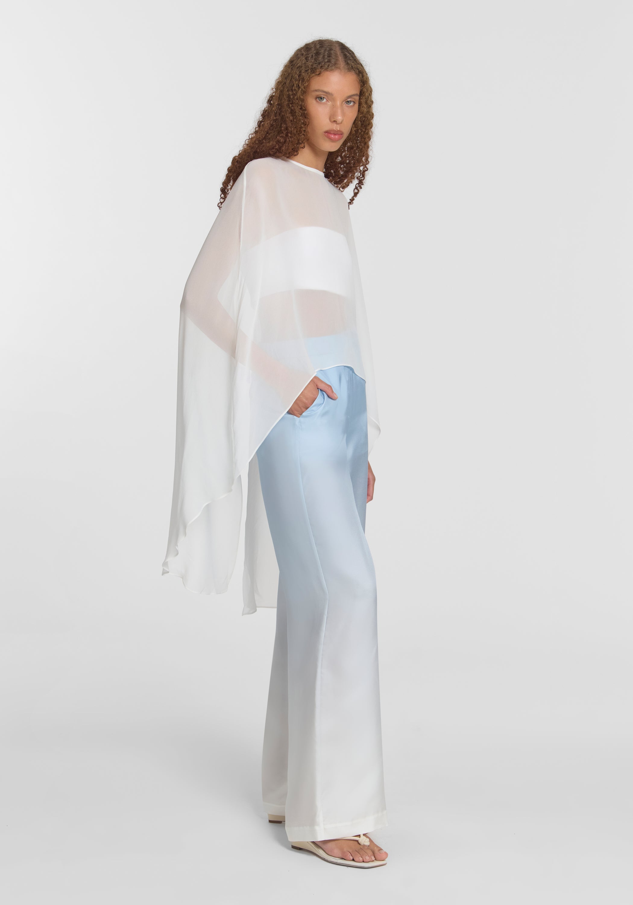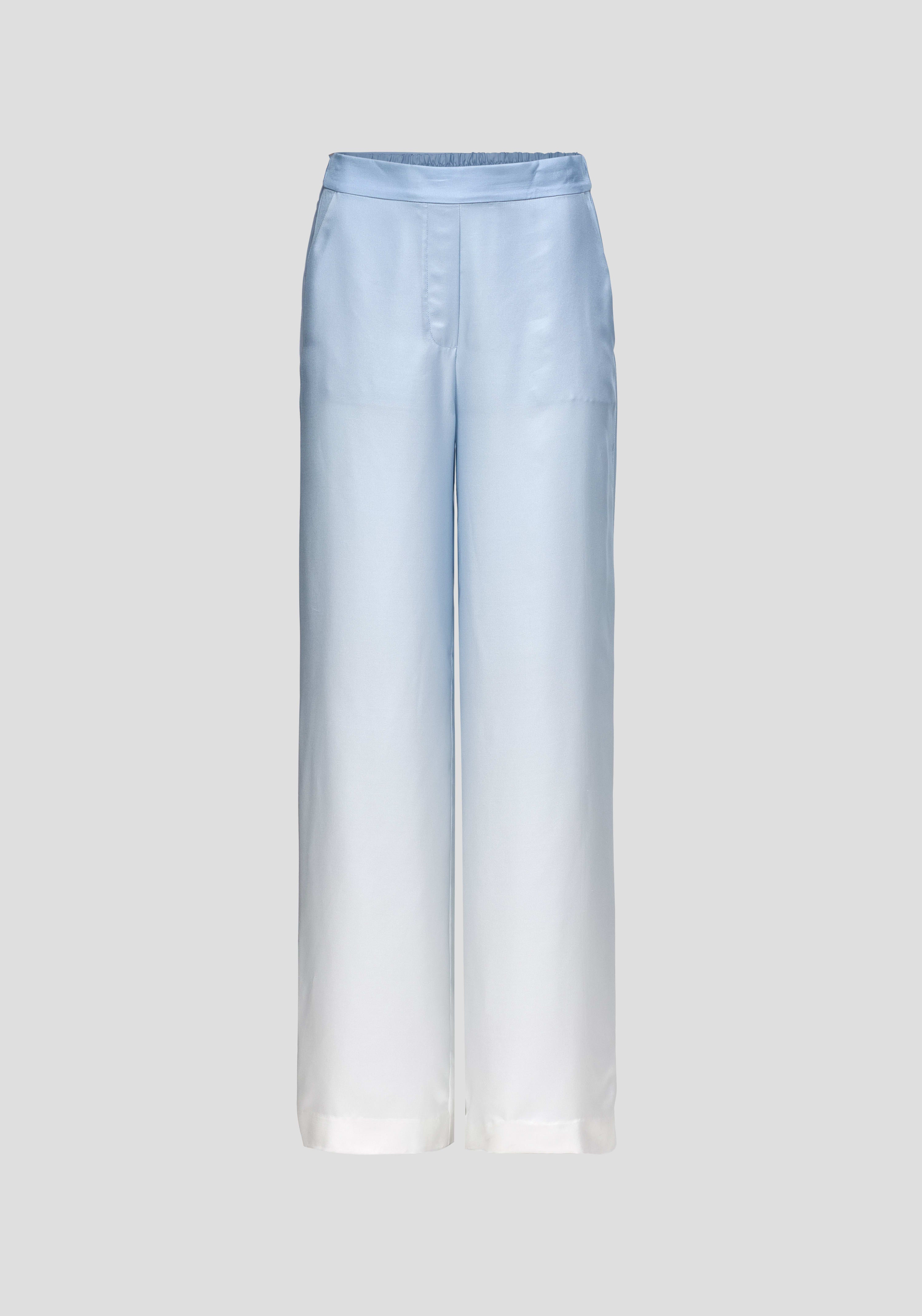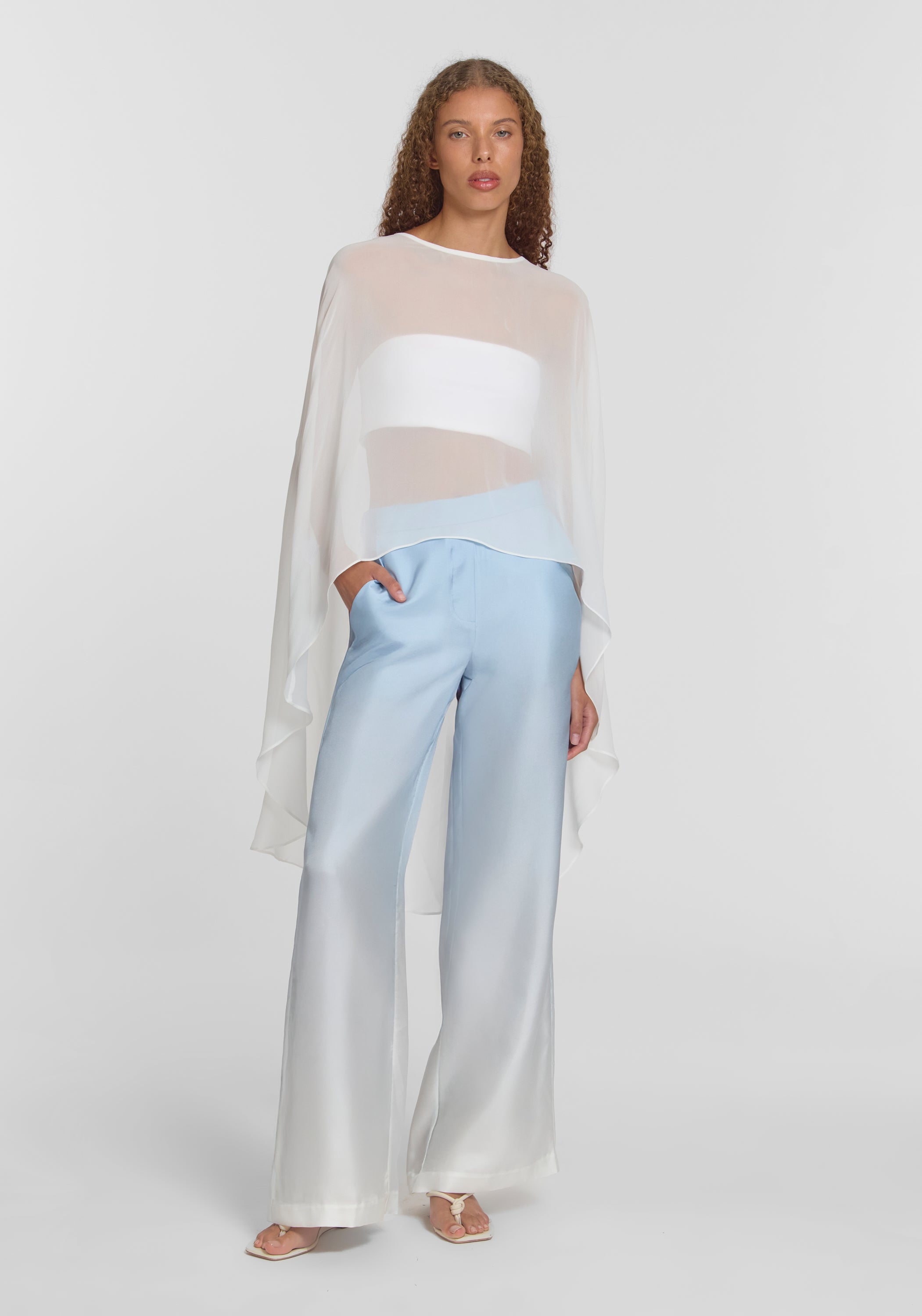 The Willow Pant is crafted from luxurious, weightless silk and realised in a soft blue ombre print, echoing the waves of the sea. Designed in a mid-rise, straight-leg silhouette, it features a flat front waistband, elasticated back, pockets, and a fluid drape that moves effortlessly. Style with the Rosemary Top for a refreshing statement grounded in quiet luxury, offering considered ease and a serene, modern attitude.