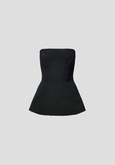The Winslow Bustier, a modern classic in our signature V&W Powermesh in black, showcases a flattering peplum silhouette. Meticulously constructed with structured boning and double layered front panels, it exudes enduring, sophisticated allure for versatile wear.
